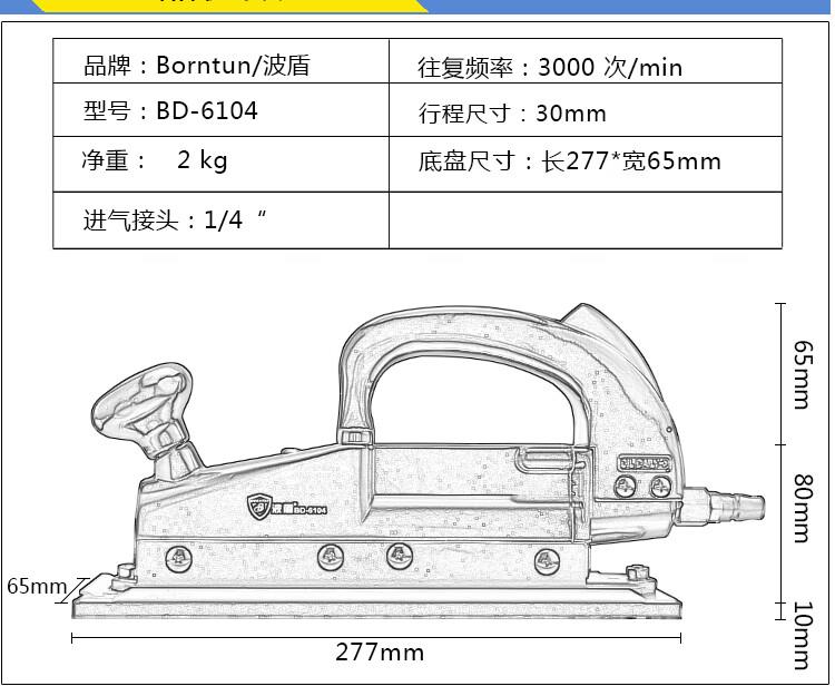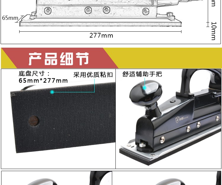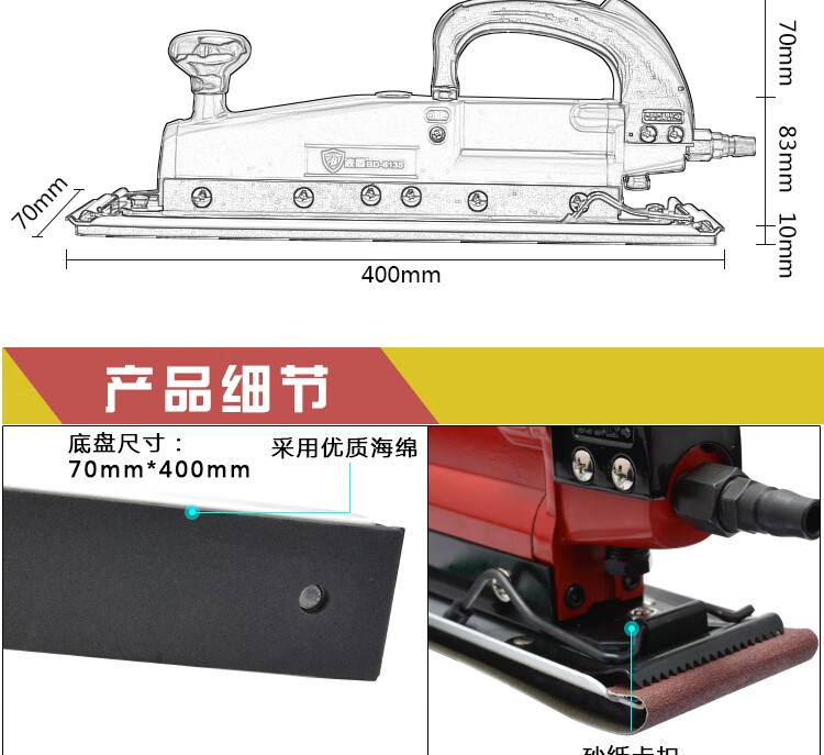 Bodun Máquina de papel de lija orbital Lijadora neumática alternativa lineal Lijadora de tela Lijadora Lijadora neumática BD-7029/6104 BD-7029-Domestic Black