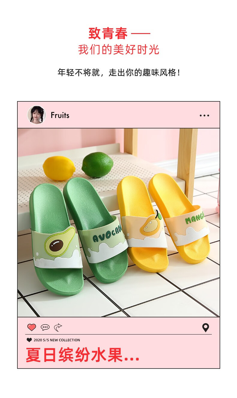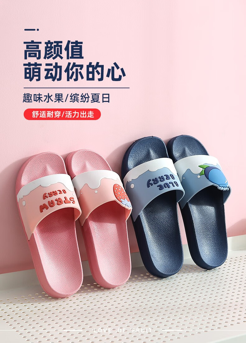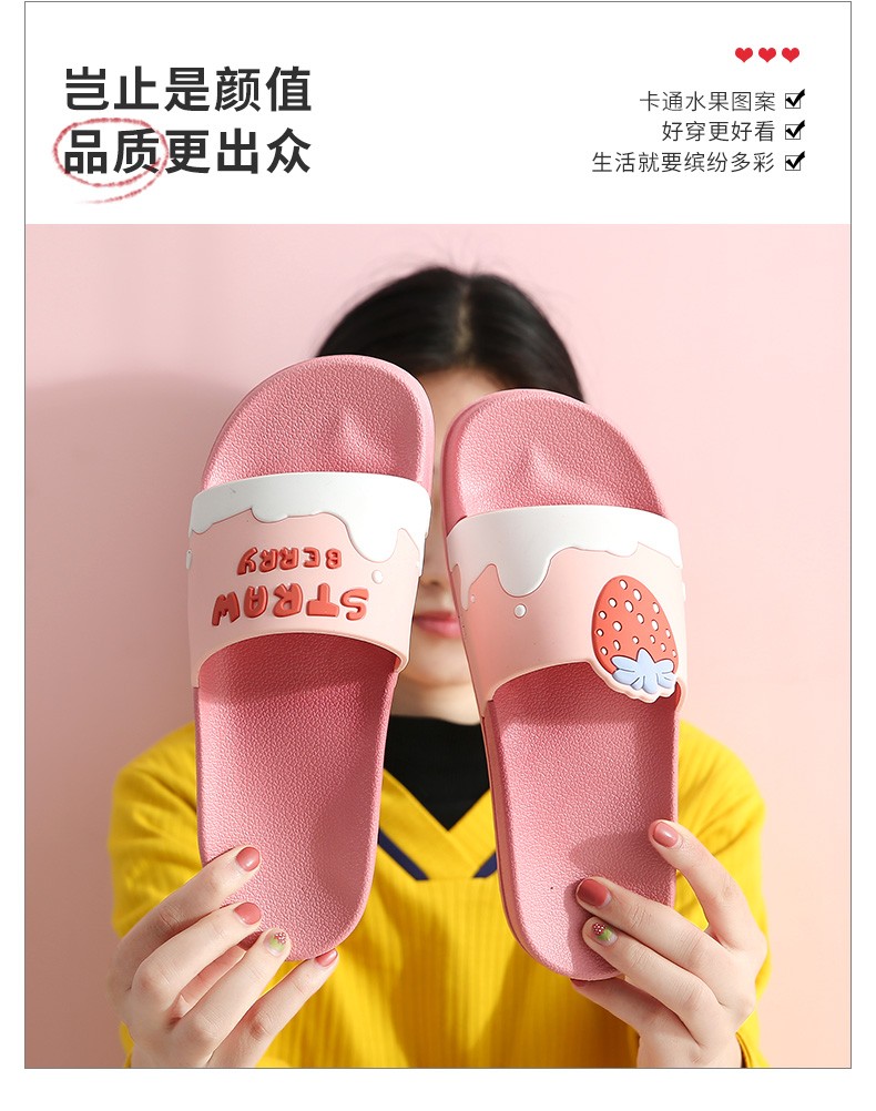 惠夫人拖鞋女夏季室内家居用家用浴室洗澡防滑软底外穿静音情侣凉拖鞋女 果缤纷 皮红 36-37 (适合35-36码穿)