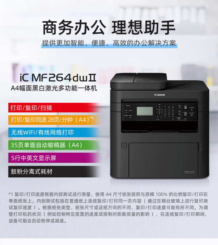 佳能(canon)MF266dnⅡ/264dwⅡ黑白激光网络商用办公打印机复印扫描一体机/自动双面 有线网络MF266dn【双面打印】四合一