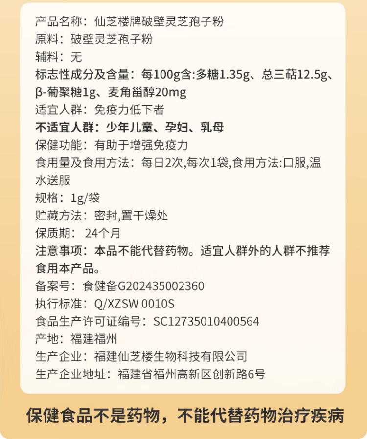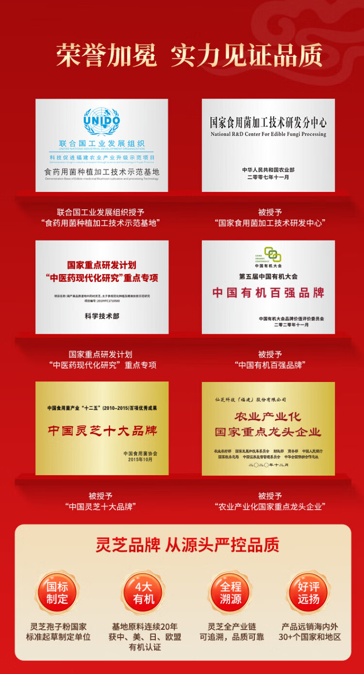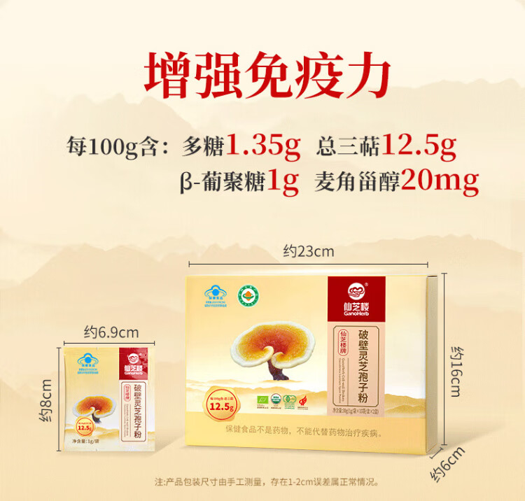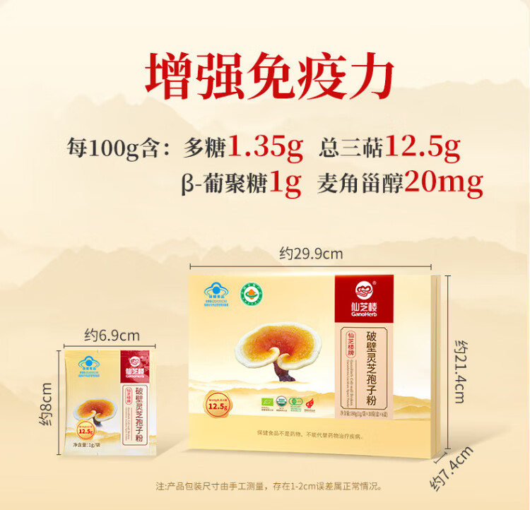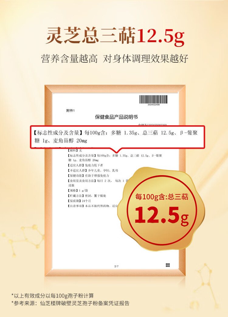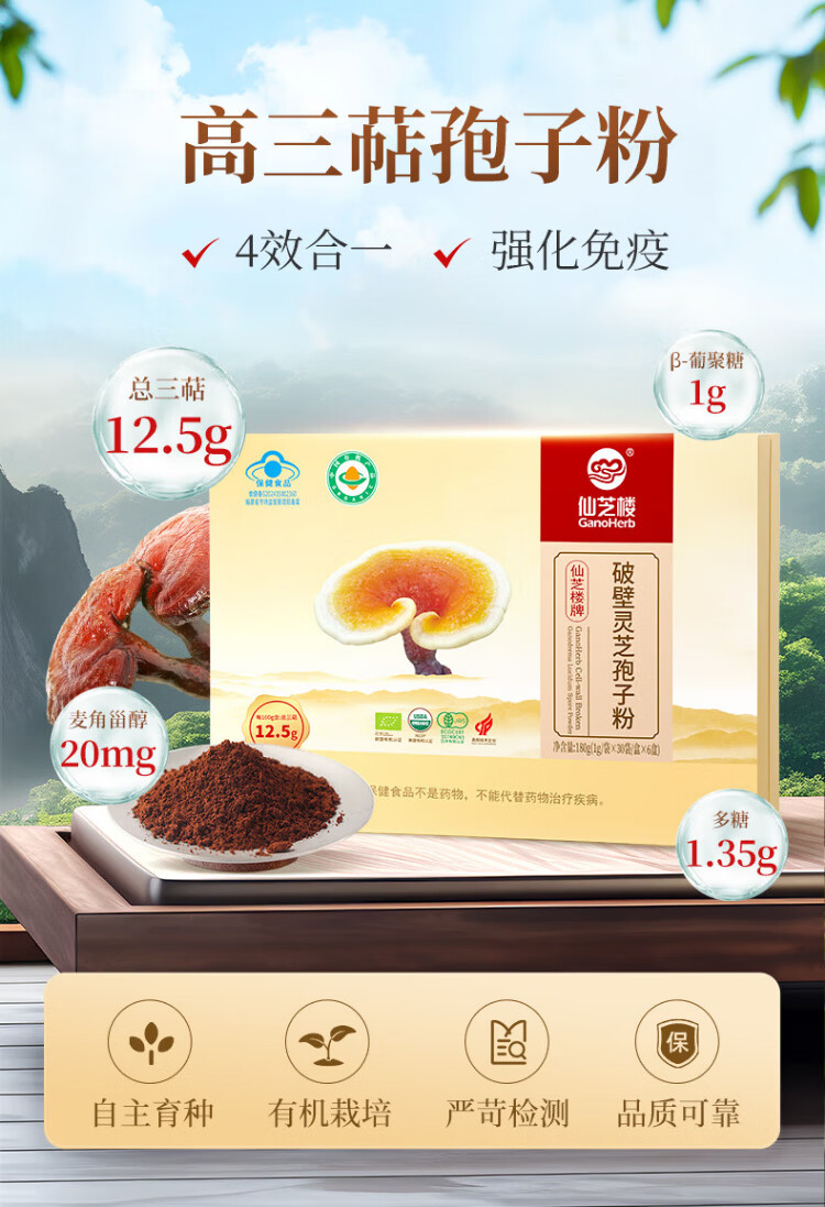 Xianzhilou Four Organic Broken Ganoderma Spore Powder High Triterpenes National Standard Formulated to Enhance Immunity Gift Health Products 2 Boxes 360g Triterpenes 12.5g - Half a Year's Supply Consolidation Package