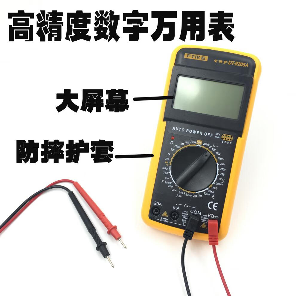 Gongtu Elektriker DT9205A hochpräzises elektronisches Multimeter, digitales Messgerät, Multimeter, Anti-Verbrennungsgürtel, automatische Abschaltung, offizieller Standard (einschließlich Anleitung für den Batterieteststift)