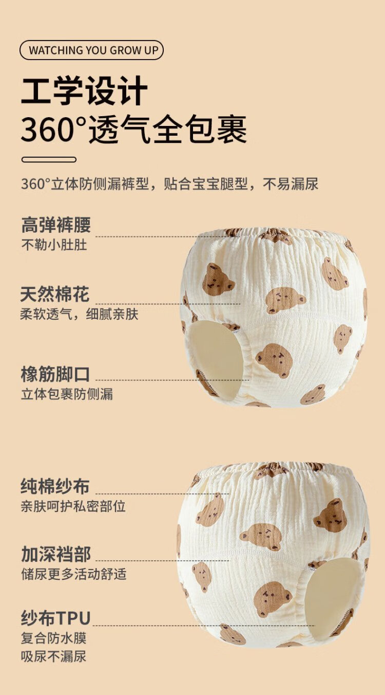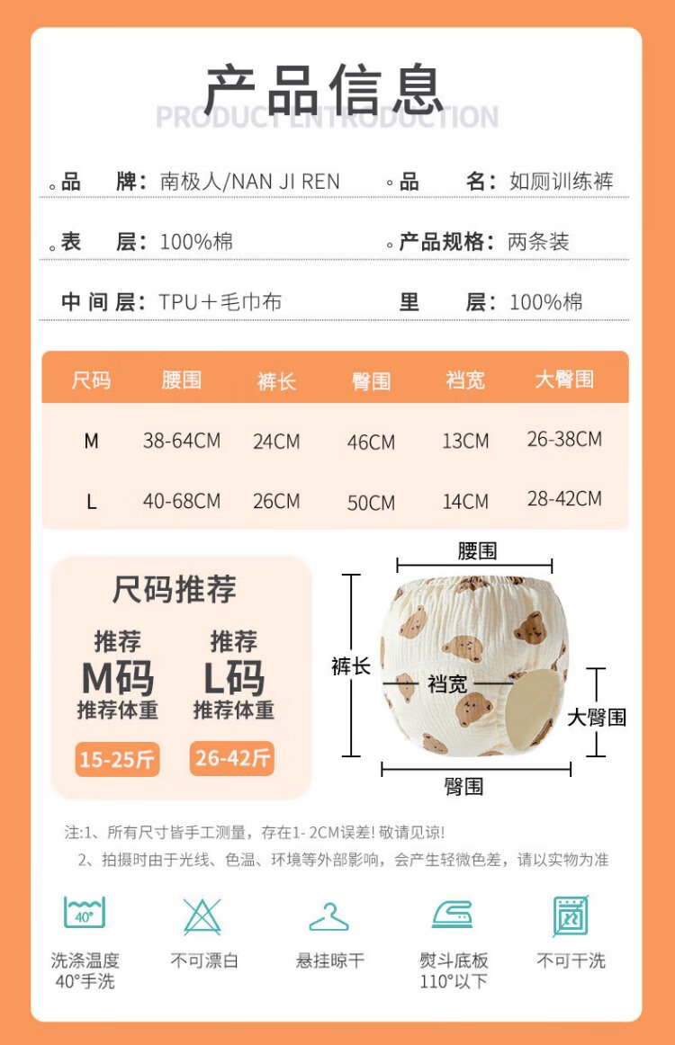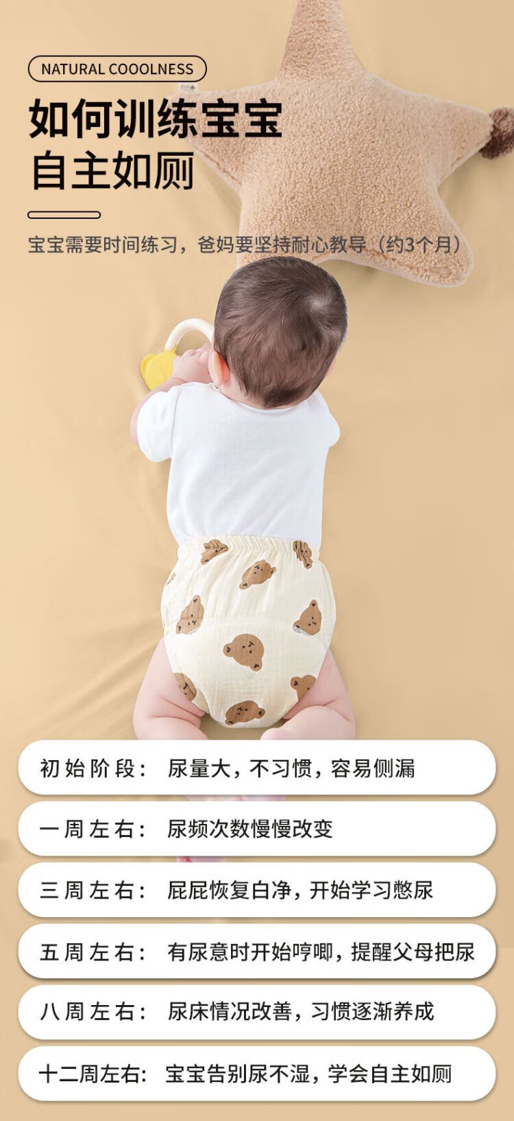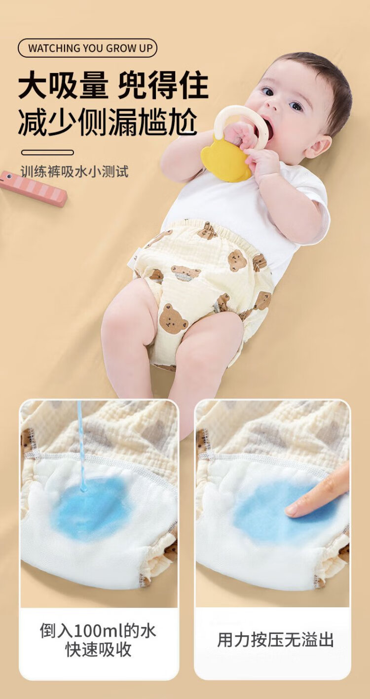 Nanjiren baby diapers pure cotton washable gauze toilet training pants for newborns to stop diapers 2 packs