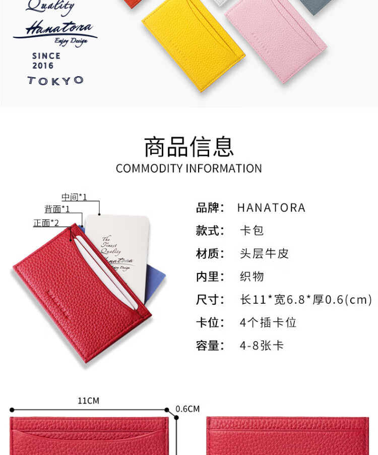 HANATORA Tarjetero de estilo japonés para hombre, tarjetero de cuero ultrafino, tarjetero de identificación para hombre y mujer, regalo de San Valentín, azul claro