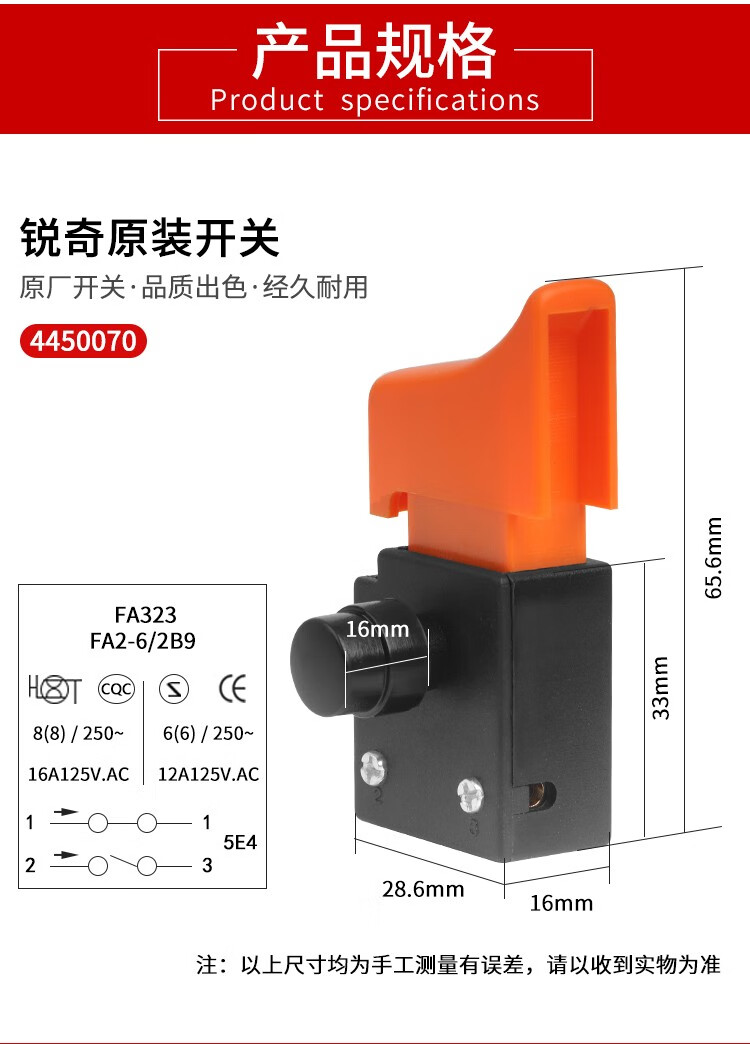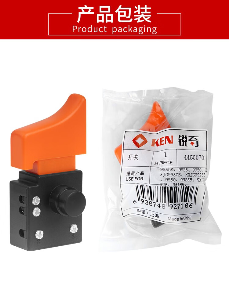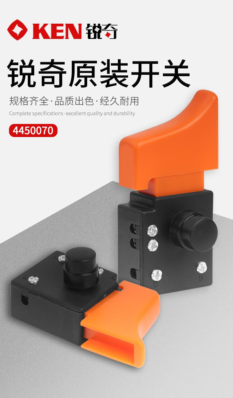 锐奇(KEN)原装角磨机开关磨光机直砂机9925D/9950D/9725/9750配件16A大功率 锐奇角磨机16A开关【4450070】