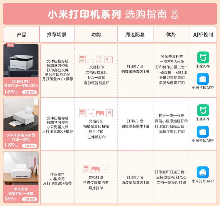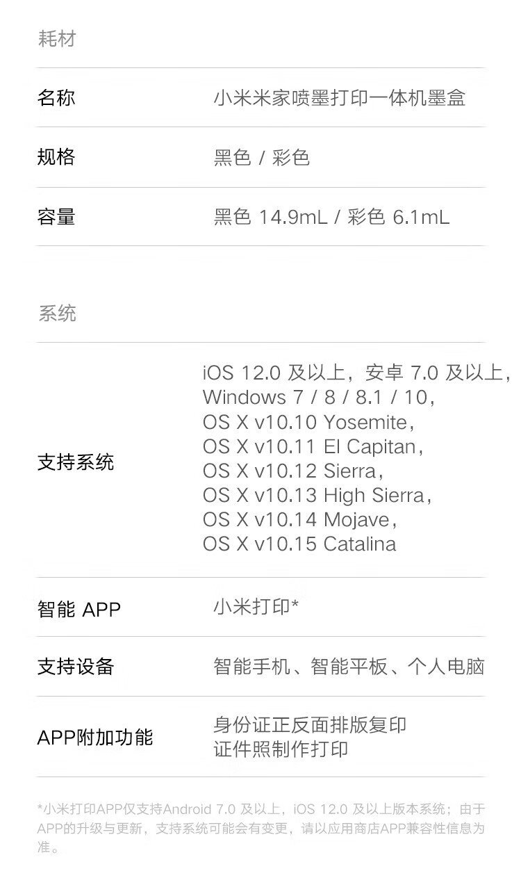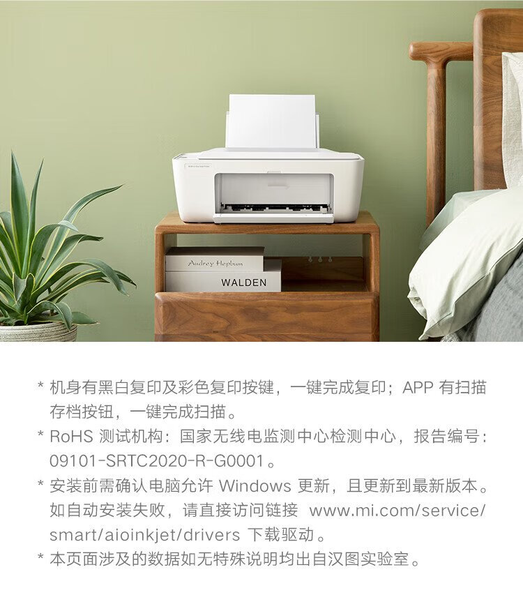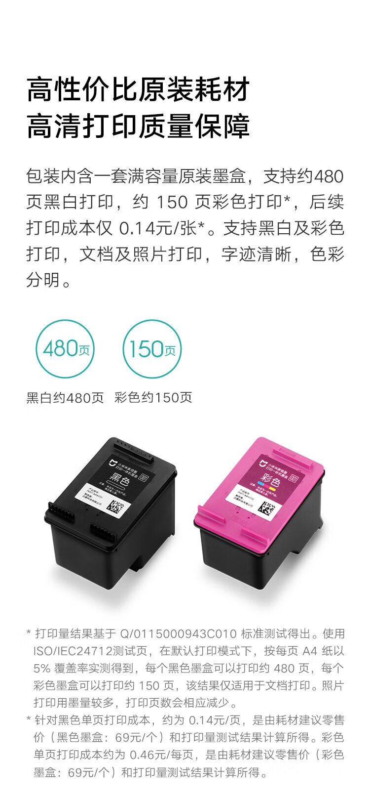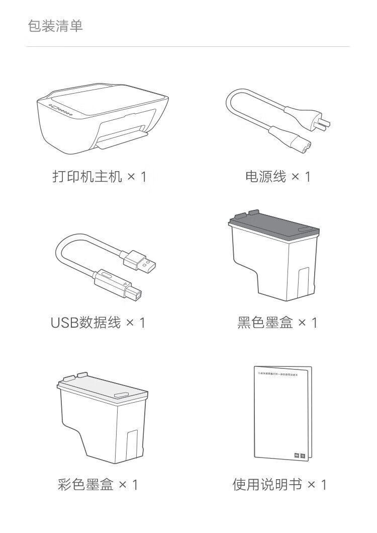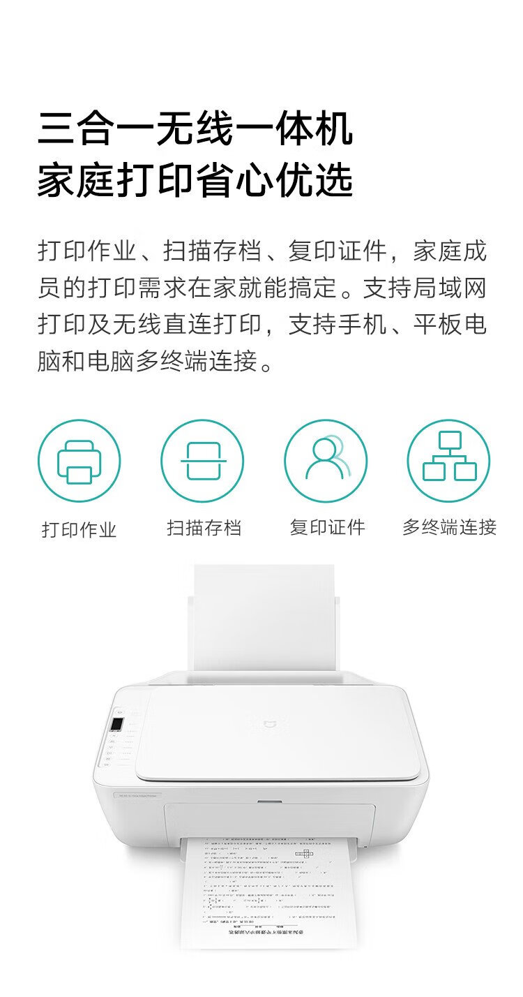 小米小米喷墨打印一体机多功能彩色打印机复印扫描黑色照片打印小米打印机复印机 小米喷墨打印一体机