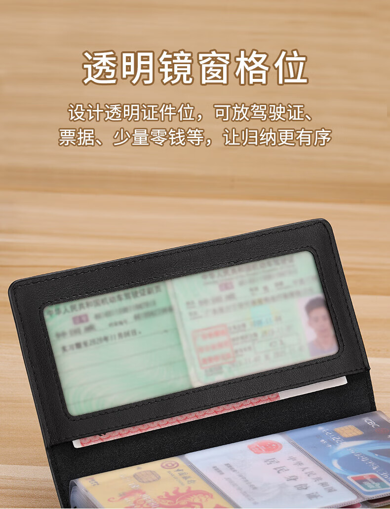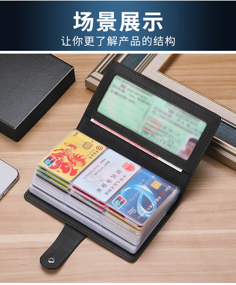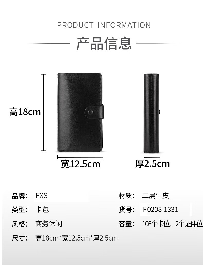 FXS genuine pickup bag for men, multiple card slots, large capacity bank card holder, anti-degaussing business card holder, driver's license holder, two-in-one wallet, black