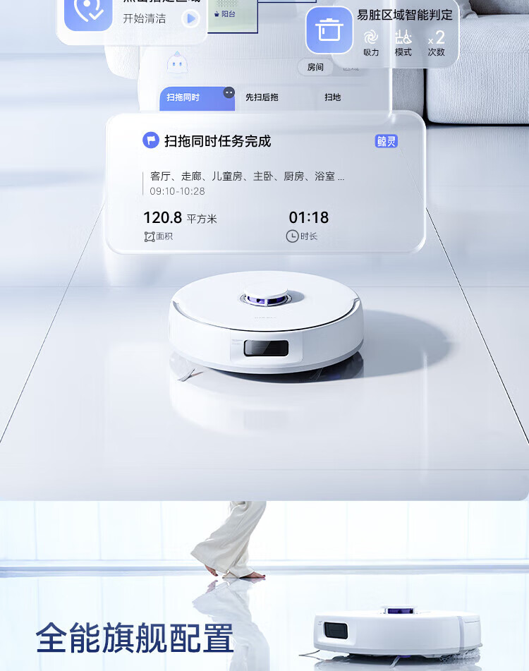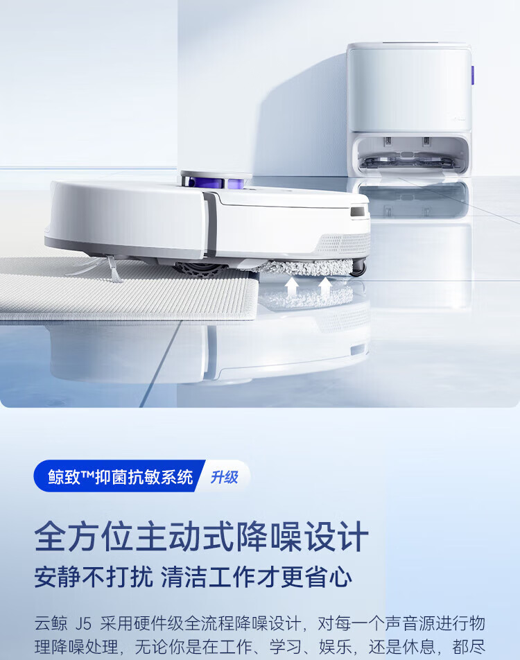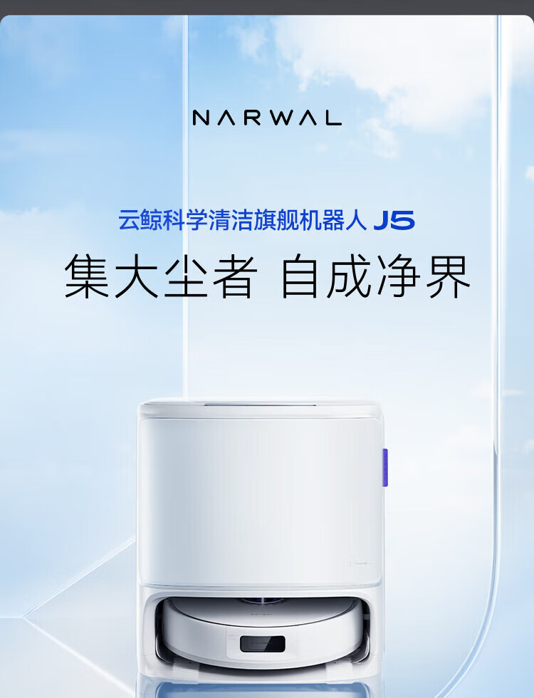 Cloudwhale-Kehrroboter J5Max All-in-One-Kehr- und Wischautomatik, automatische Reinigung und vollautomatische Wischmaschine. Bionischer Roboterarm. Cloudwhale J5-Wassertankversion