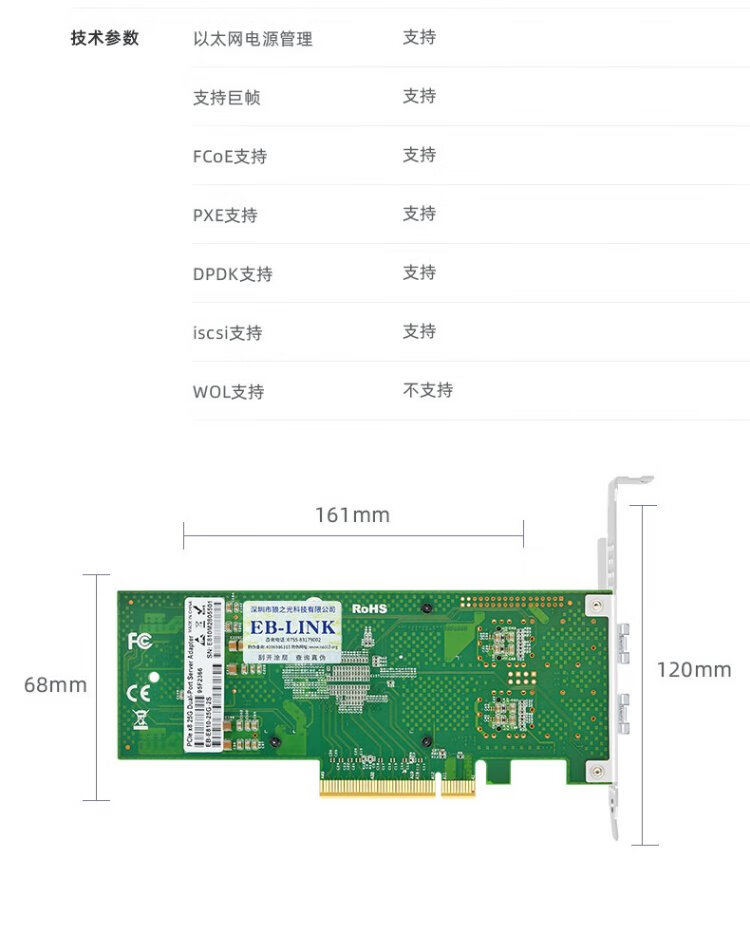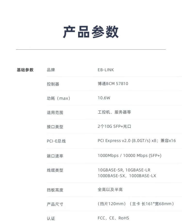 EB-LINK BCM57810S Chip PCI-E X8 10G Dual-Port-Glasfaser-Netzwerkkarte 10G-Server SFP+-Schnittstelle Netzwerkadapter