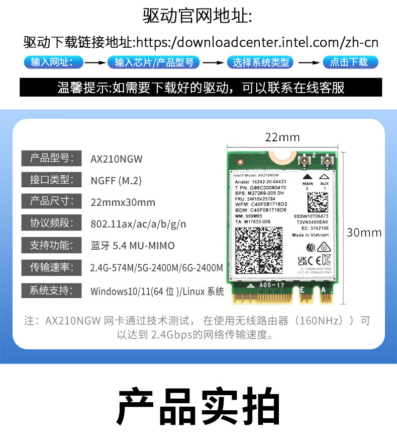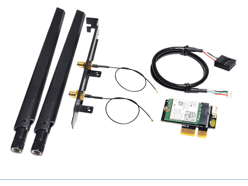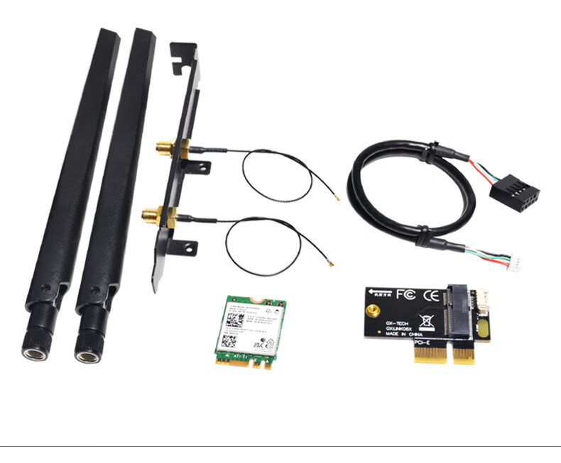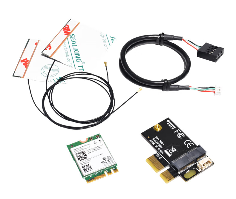 Gxlinkstar WiFi6 WiFi7 desktop BE200/AX210/AX200 Gigabit wireless network card tri-band 5374M Bluetooth 5.3 computer WiFi receiver small PCI-E kit package AX210+PCIE small transfer board+external antenna*1 set