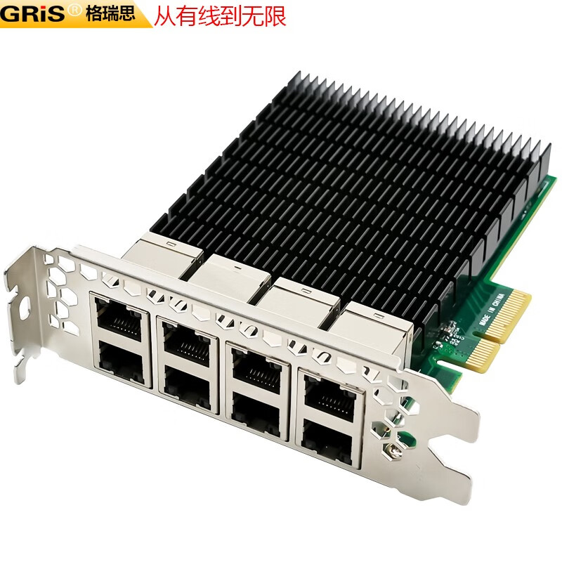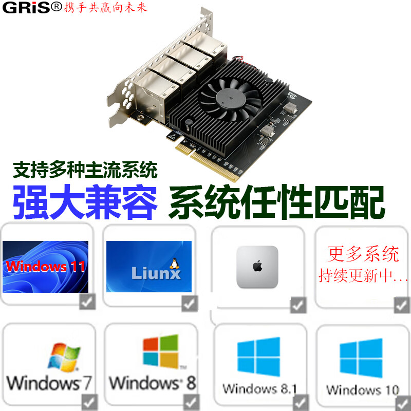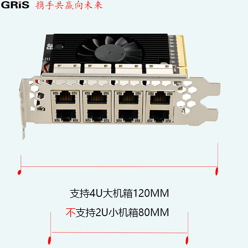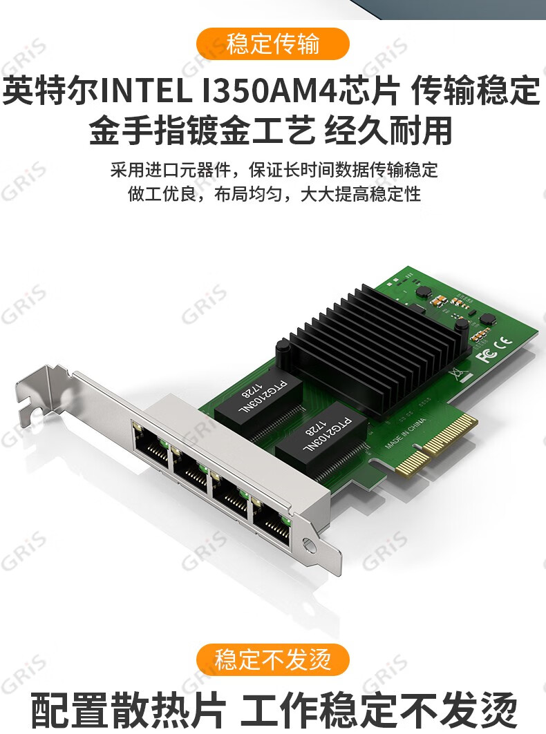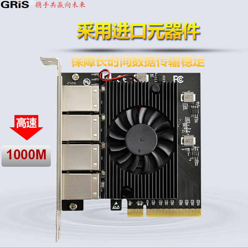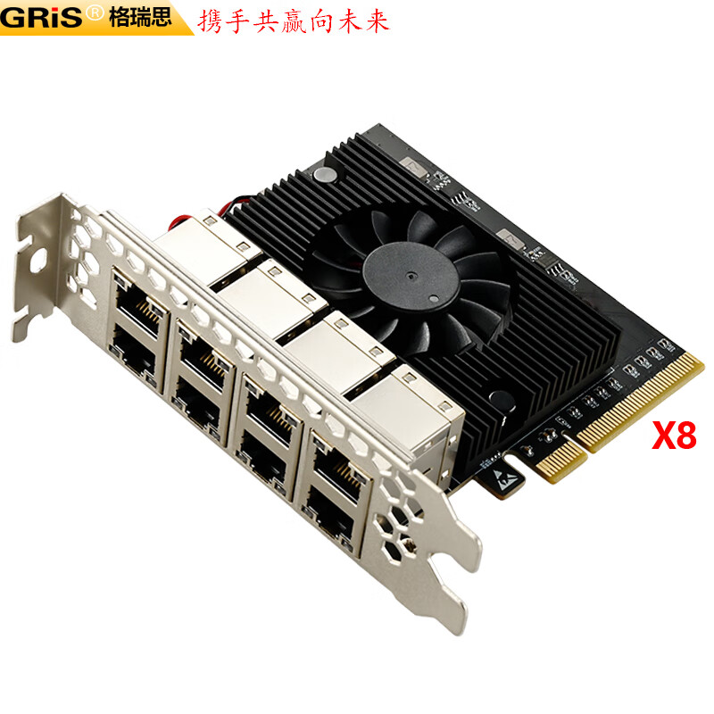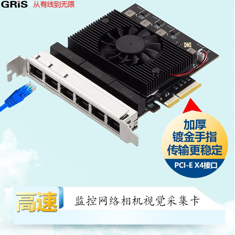 GRIS 8-port Gigabit network card PCI-E Ethernet card I350AM4 visual collection 6-port computer 2.5G Realtek RTL8111H Synology soft routing 350T4 server 8125B 6-port RTL8125B chip X4 card slot 2.5G with fan
