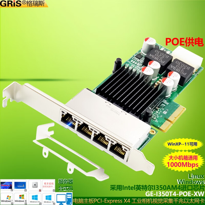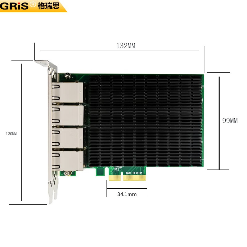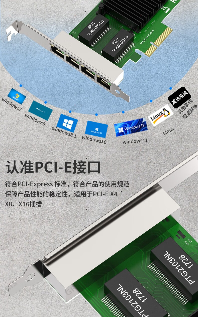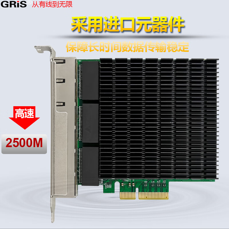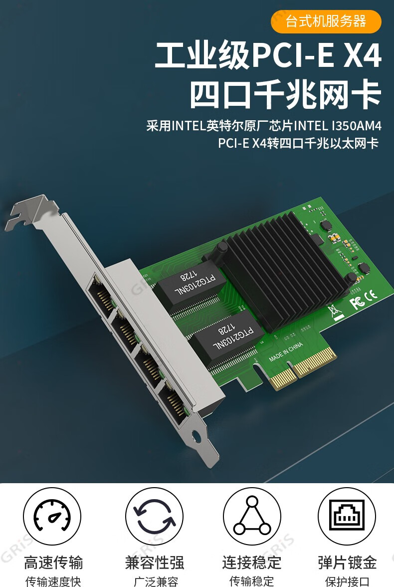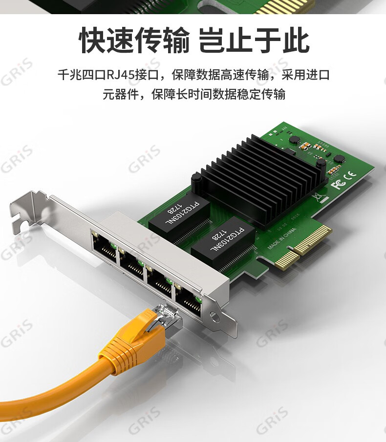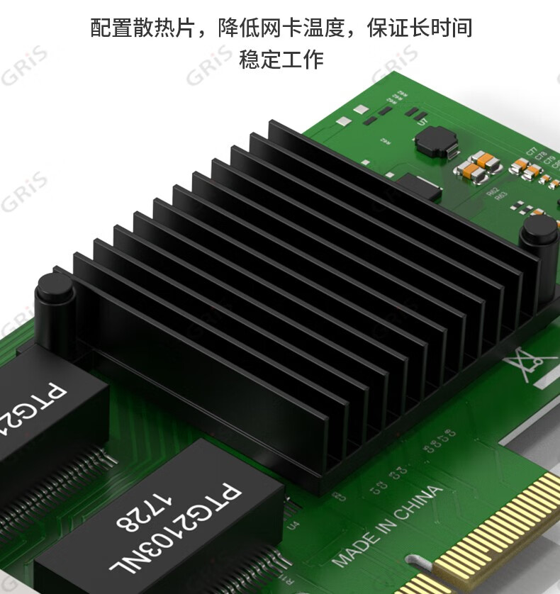 GRIS 8-port Gigabit network card PCI-E Ethernet card I350AM4 visual collection 6-port computer 2.5G Realtek RTL8111H Synology soft routing 350T4 server 8125B 6-port RTL8125B chip X4 card slot 2.5G with fan