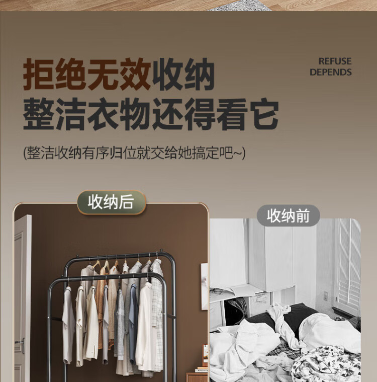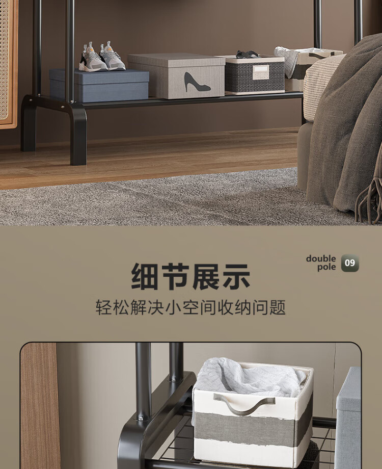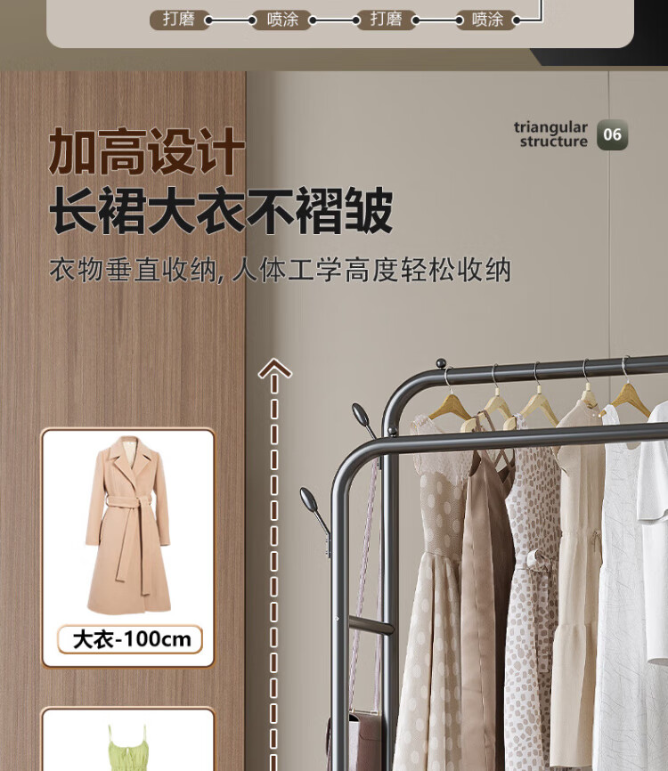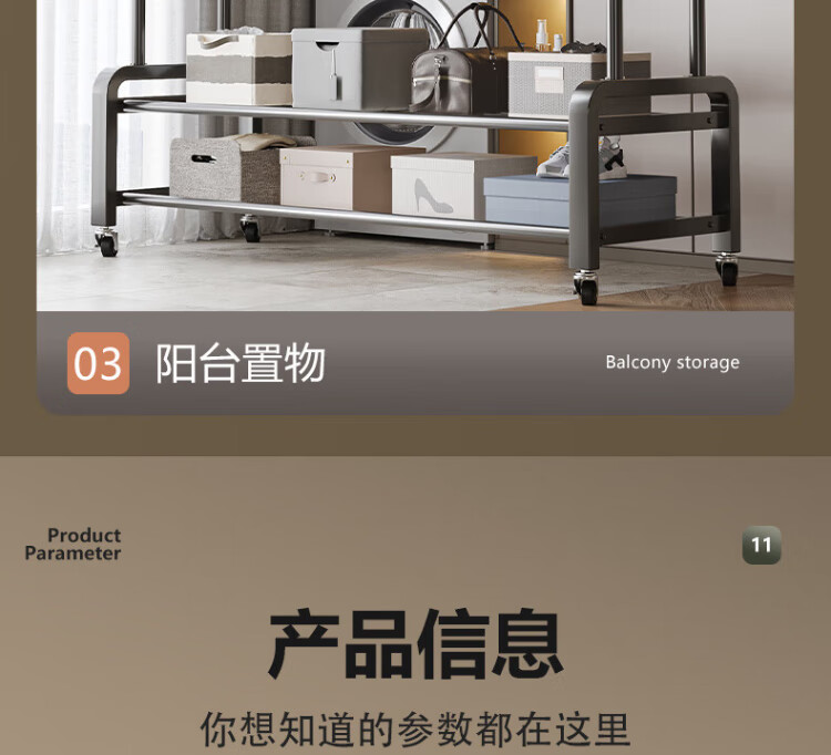 Yimo coat rack, floor-standing vertical dormitory clothes rack, bedroom-specific balcony clothes drying rack, parallel bar single layer
