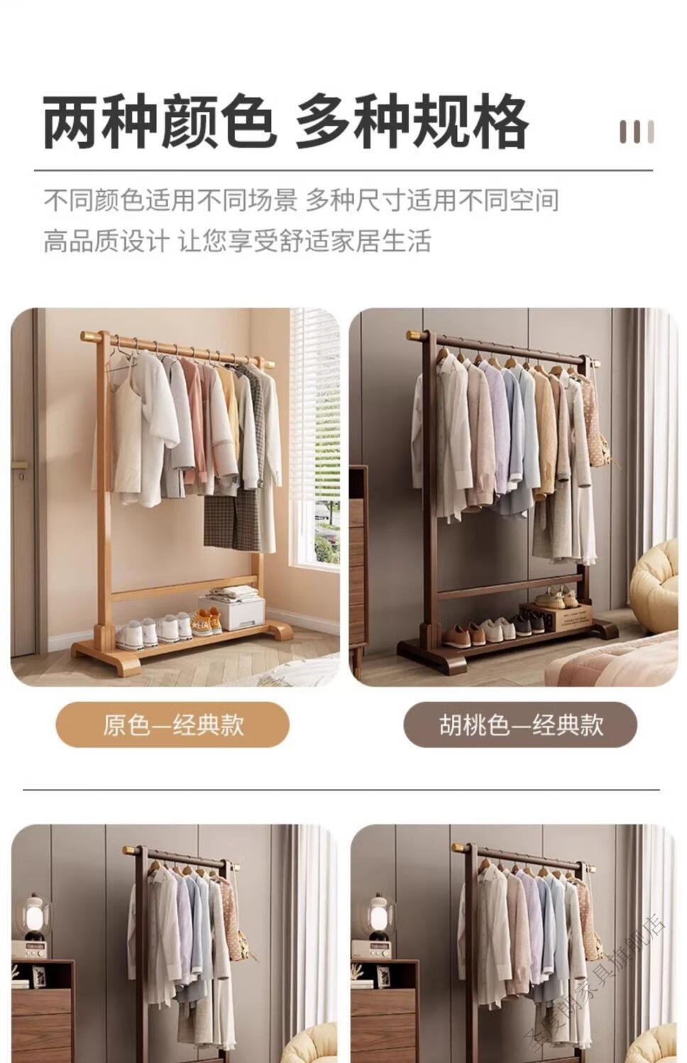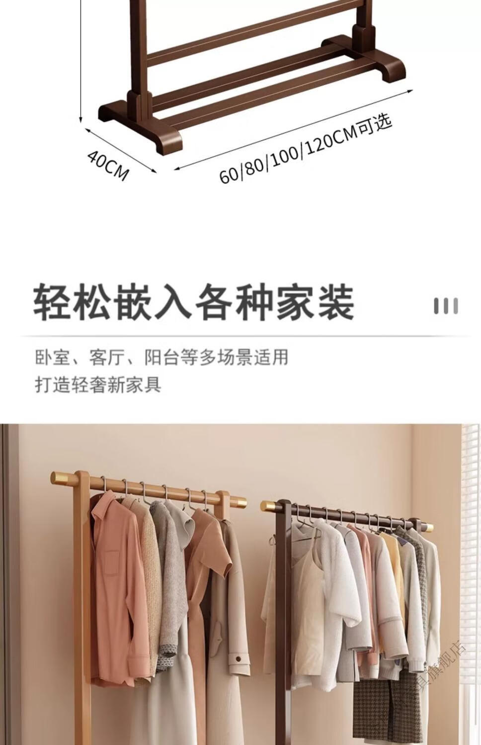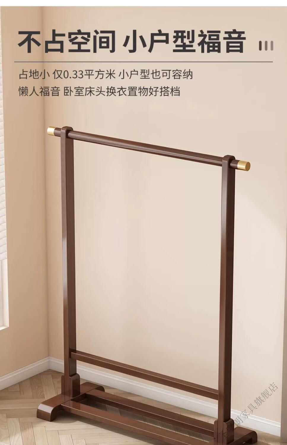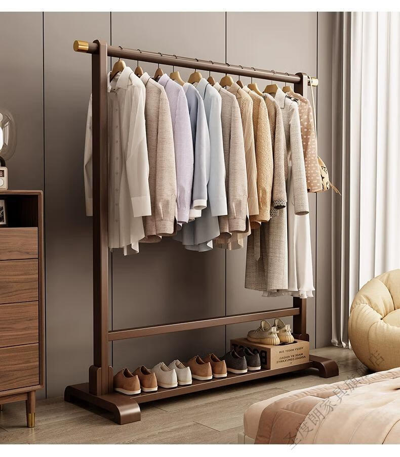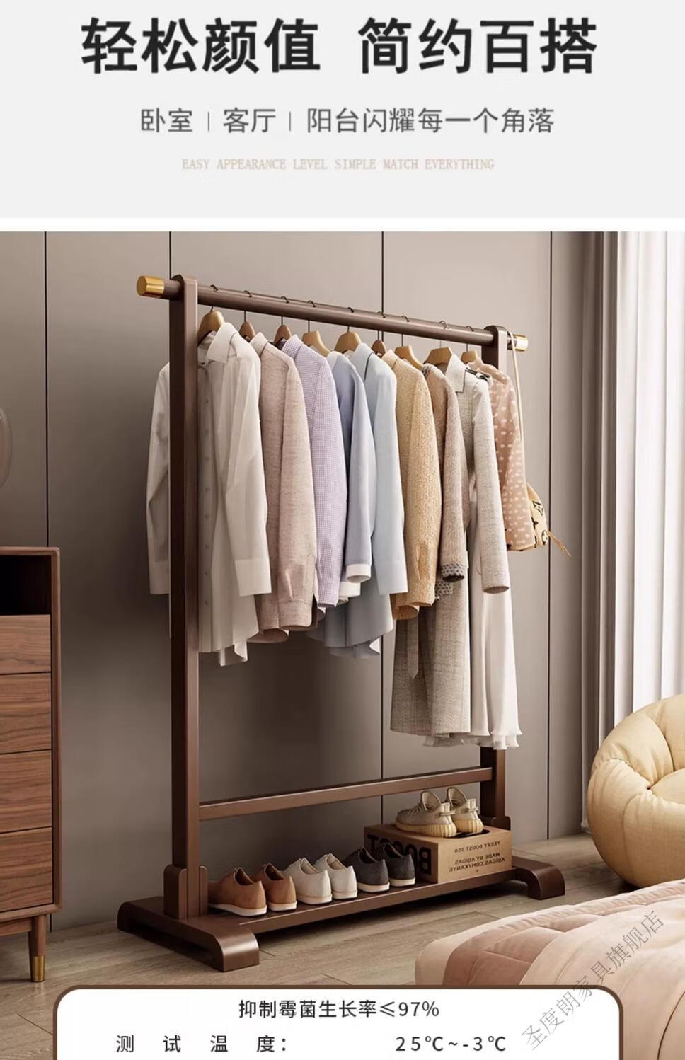 Saint-Duran solid wood clothes hanger floor-standing coat rack bedroom household clothes hanger indoor simple clothes drying rack room clothes rack -Walnut color 120 long-