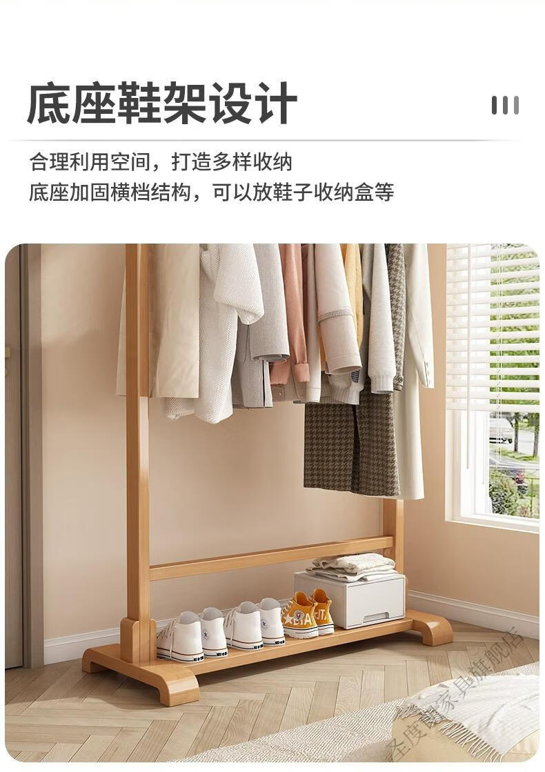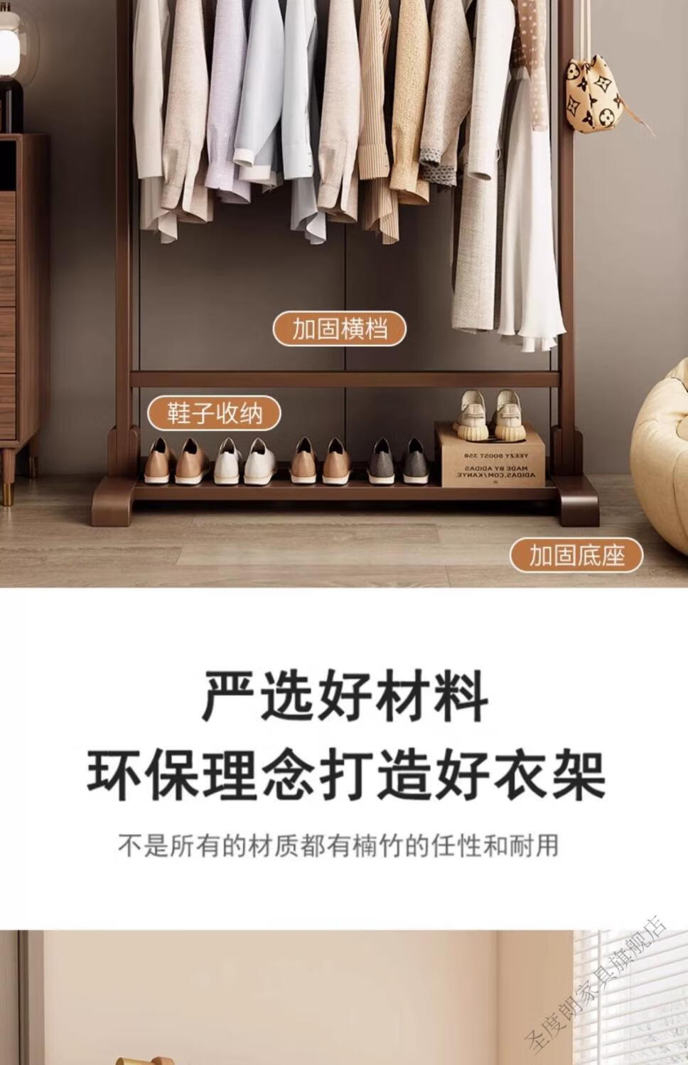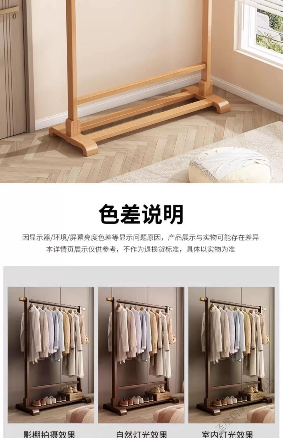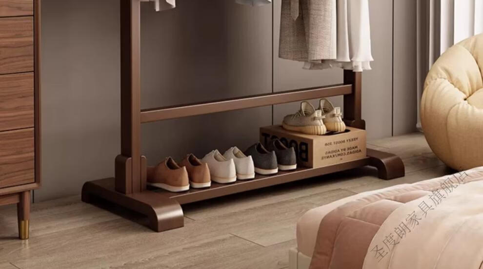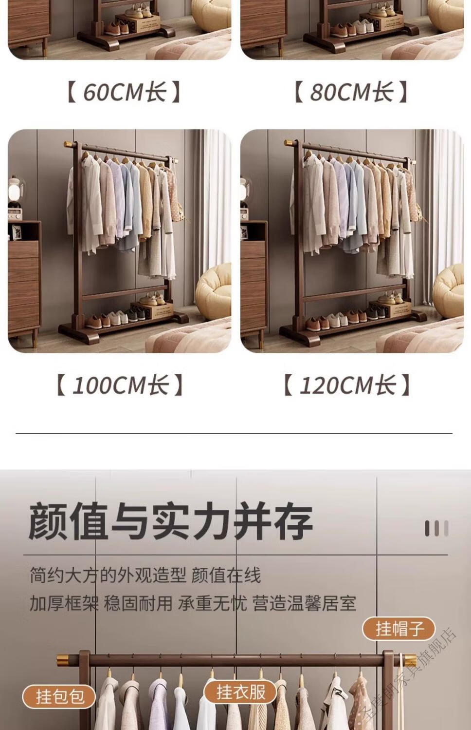 Saint-Duran solid wood clothes hanger floor-standing coat rack bedroom household clothes hanger indoor simple clothes drying rack room clothes rack -Walnut color 120 long-