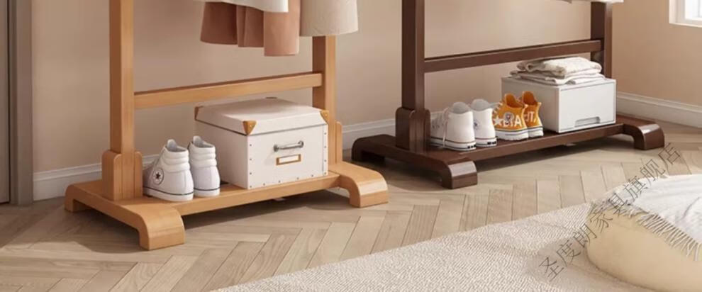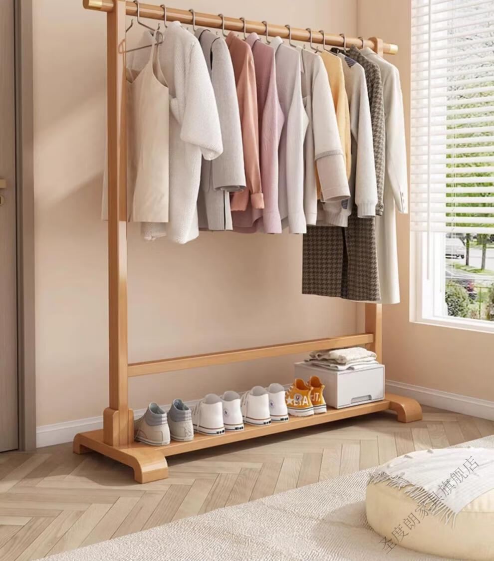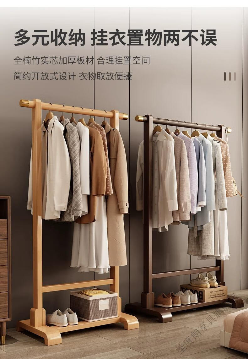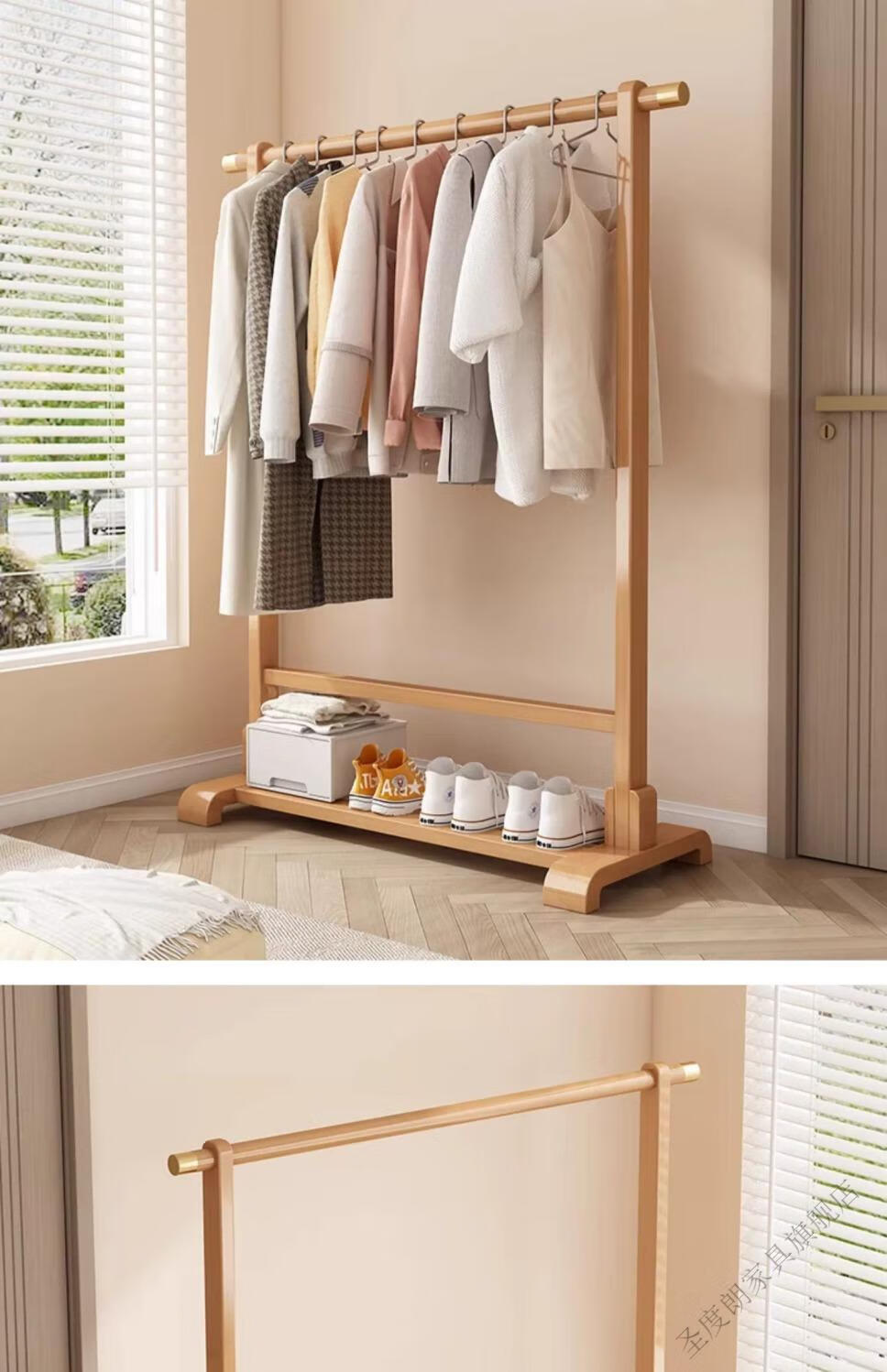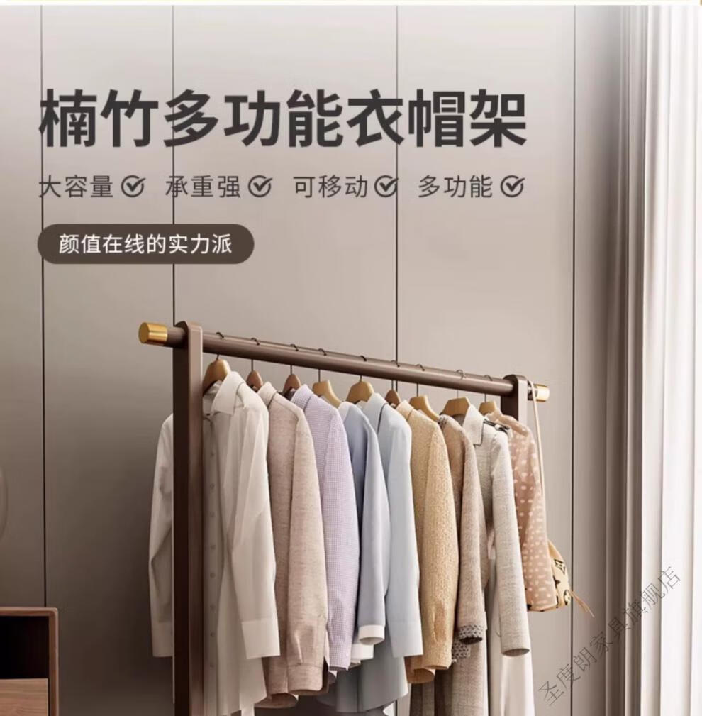 Saint-Duran solid wood clothes hanger floor-standing coat rack bedroom household clothes hanger indoor simple clothes drying rack room clothes rack -Walnut color 120 long-
