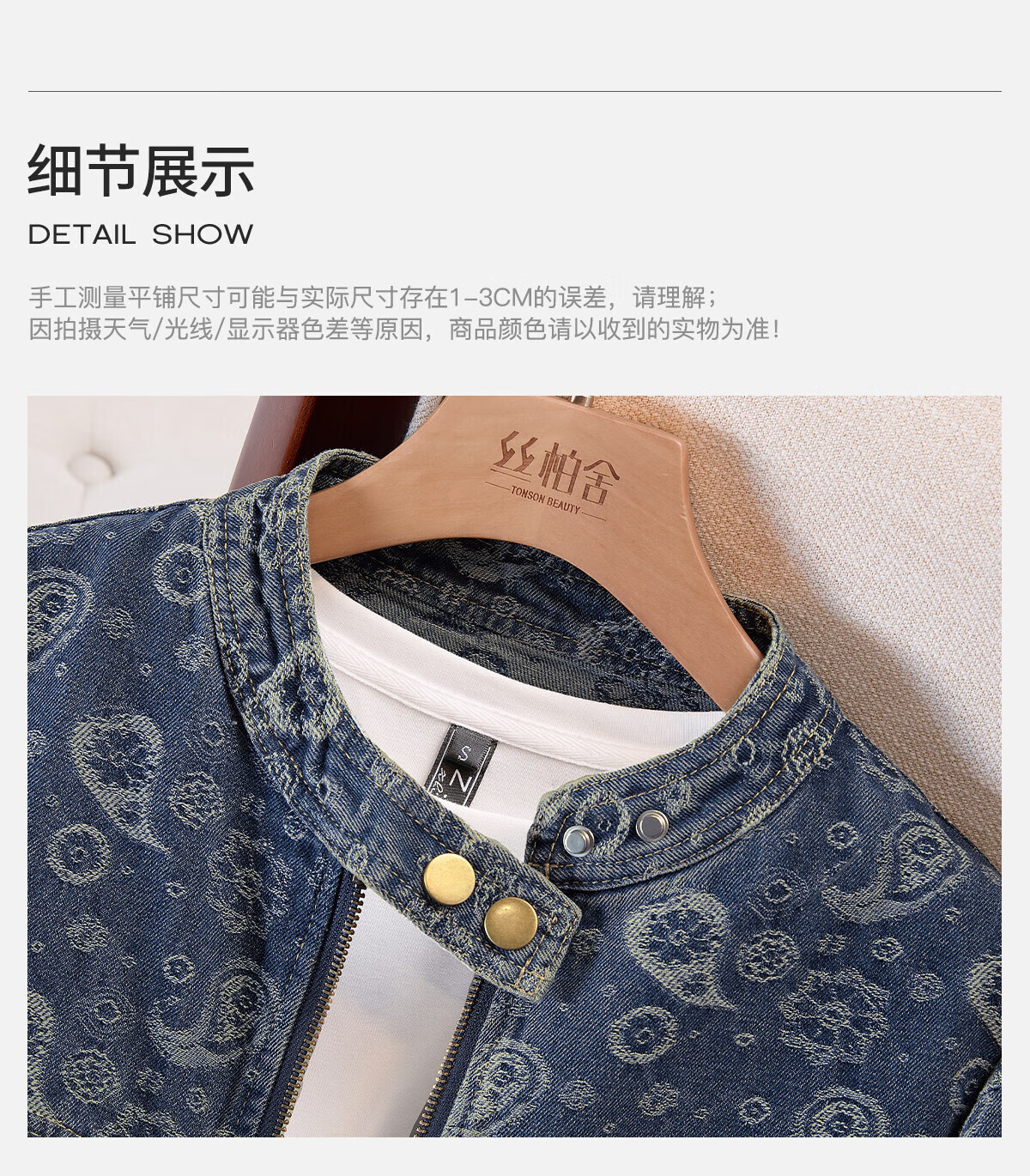 丝柏舍圆领复古长袖牛仔外套女2025秋装新款时尚水洗宽松上衣