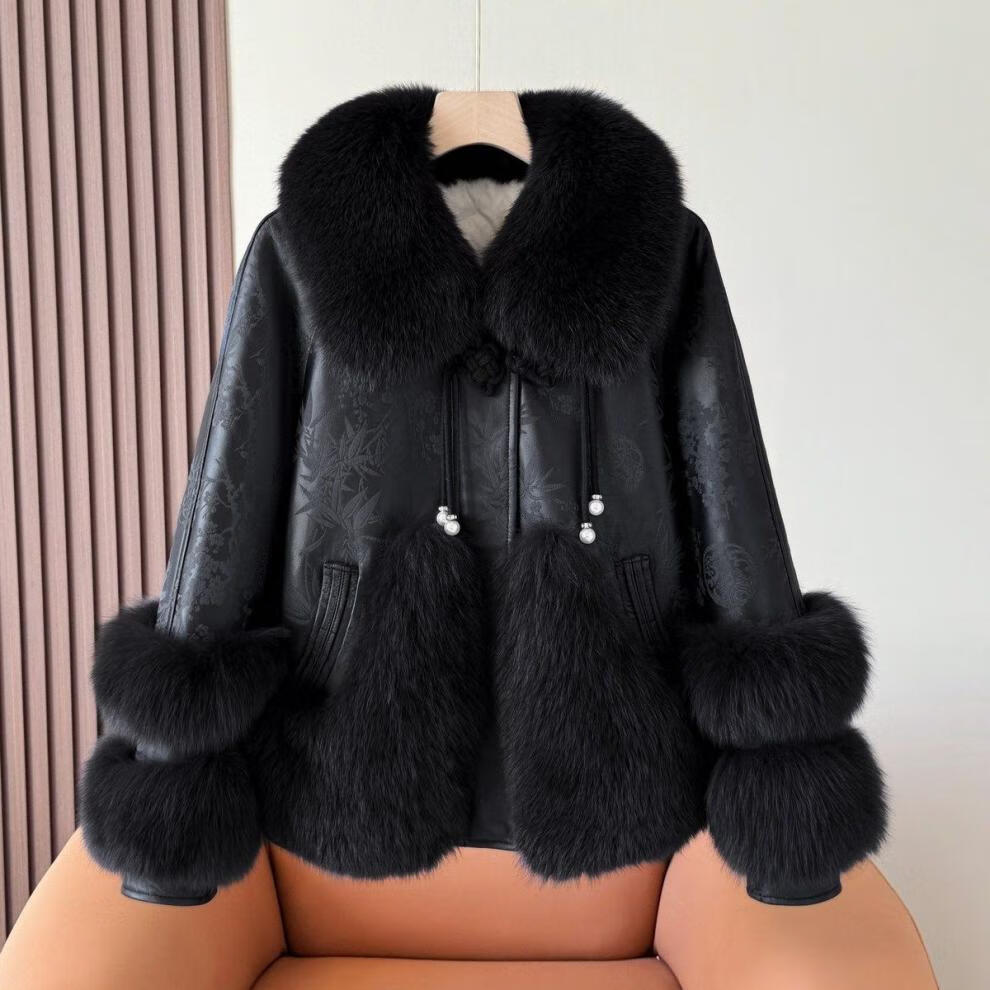Gu Bing Haining's new fox fur coat for women, young style fur one-piece sheepskin coat, fashionable black M recommendation (85-110Jin Jin equals 0.5kg)