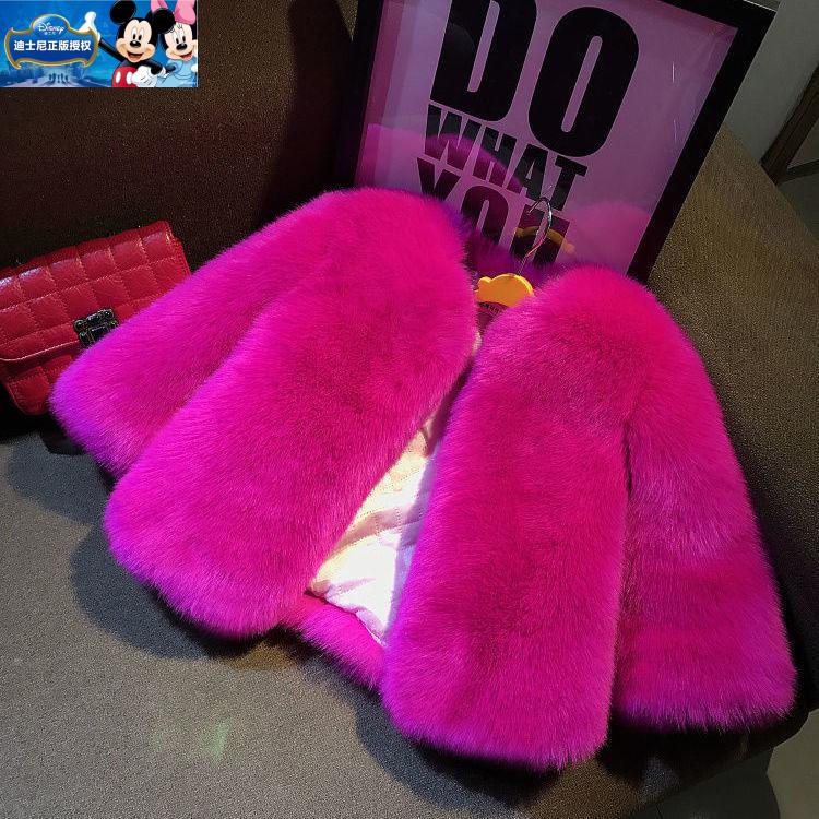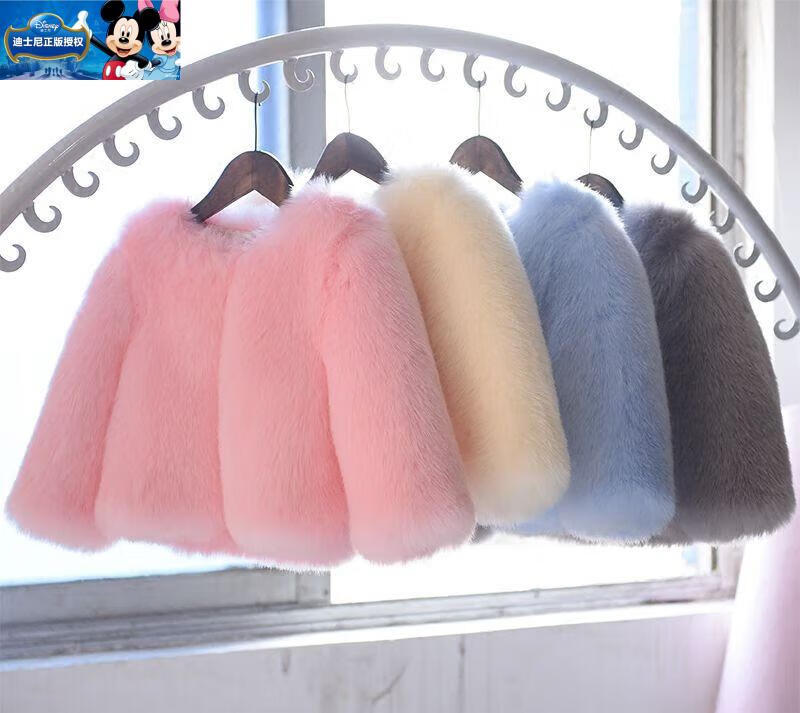 Disney 2023 neuer Herbst- und Winterimitat-Fuchspelzmantel für Mädchen, Kinderkleidung, verdickter, warmer Mantel im Plüschstil, cremefarben 120, empfohlene Höhe 105-115