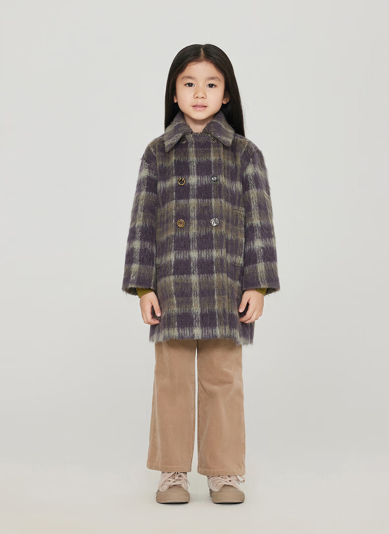 Jnby by JNBY Jiangnan Buyi Kinderbekleidung Winterwolle Wollmantel Warm mittellang kariert Mädchen Kinder 1N0810170 978 Blauer Kaffee gestreift 100 cm