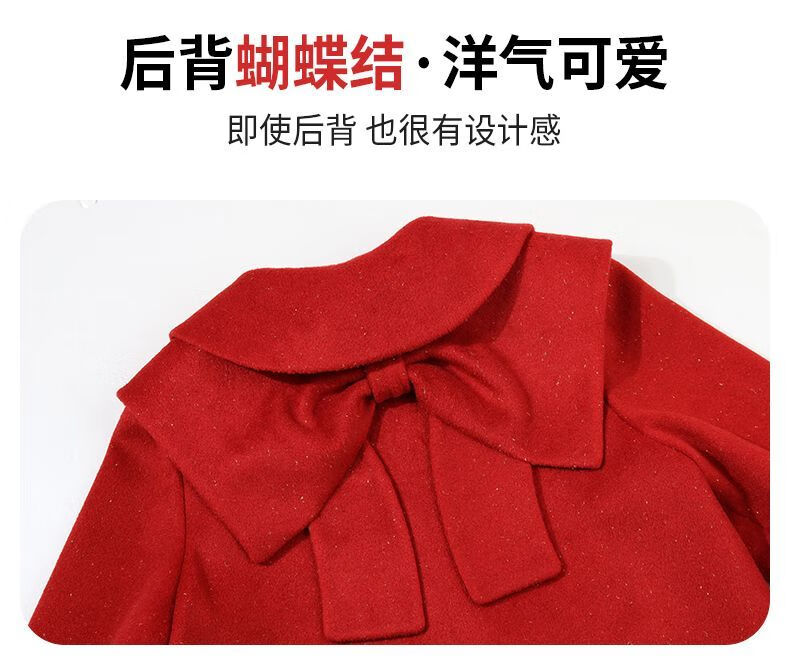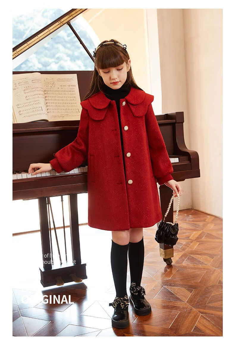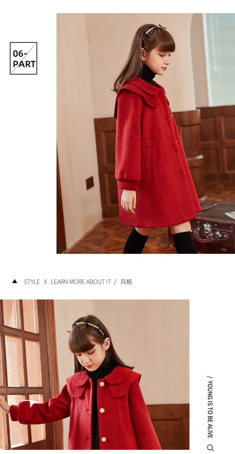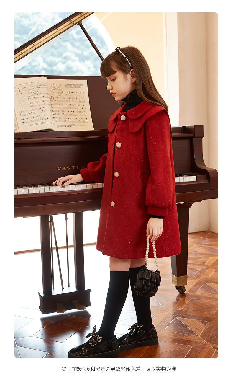 G.duck manteau en laine pour filles style automne et hiver robe de voeux du nouvel an rouge manteau en laine pour enfants épaissi matelassé rouge style matelassé 120