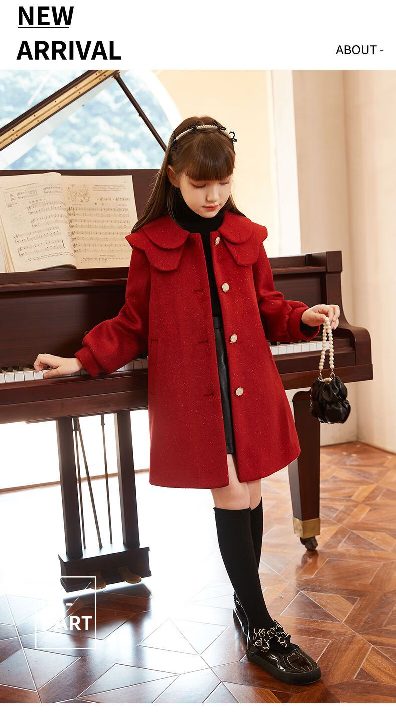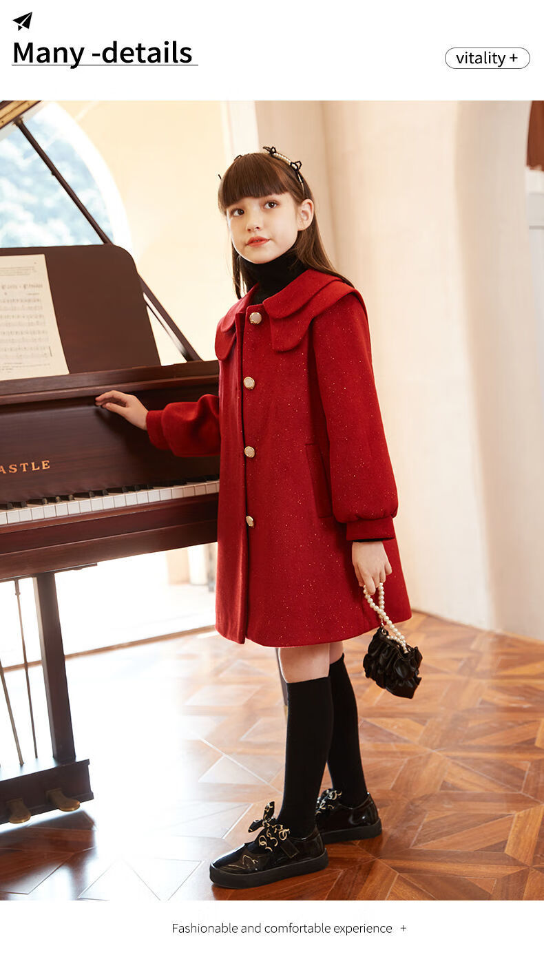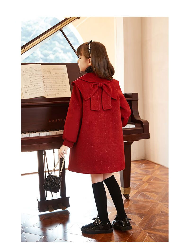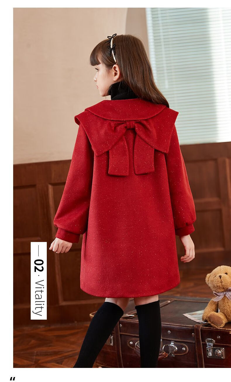 G.duck manteau en laine pour filles style automne et hiver robe de voeux du nouvel an rouge manteau en laine pour enfants épaissi matelassé rouge style matelassé 120