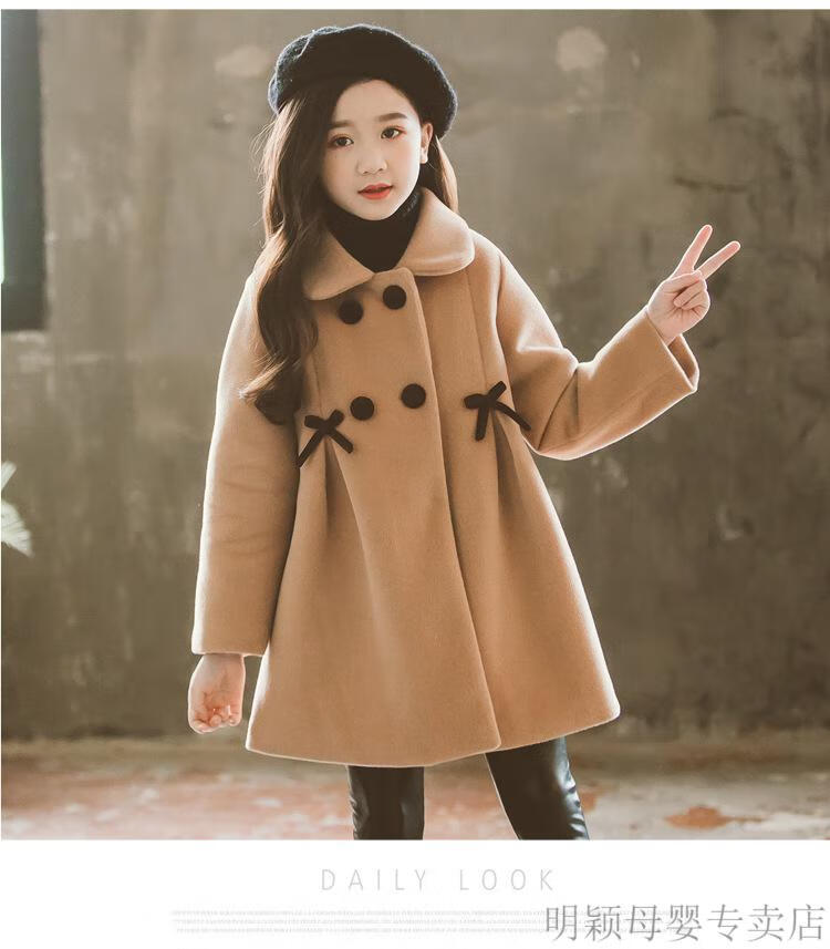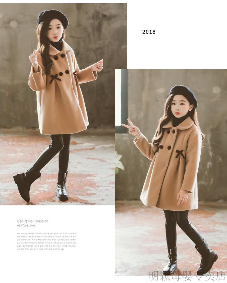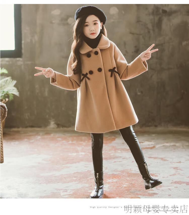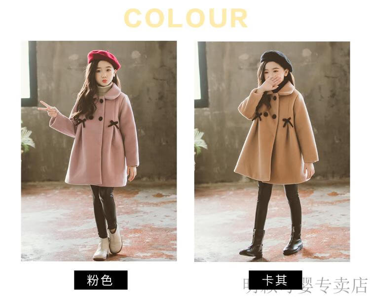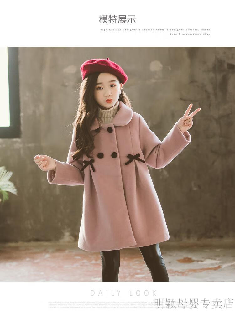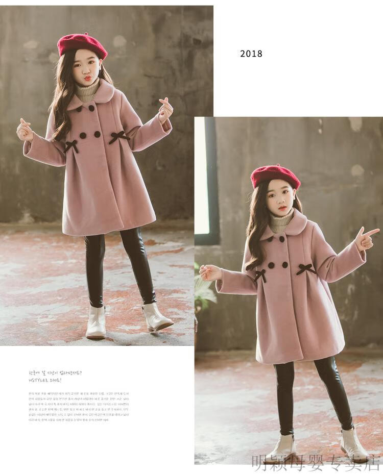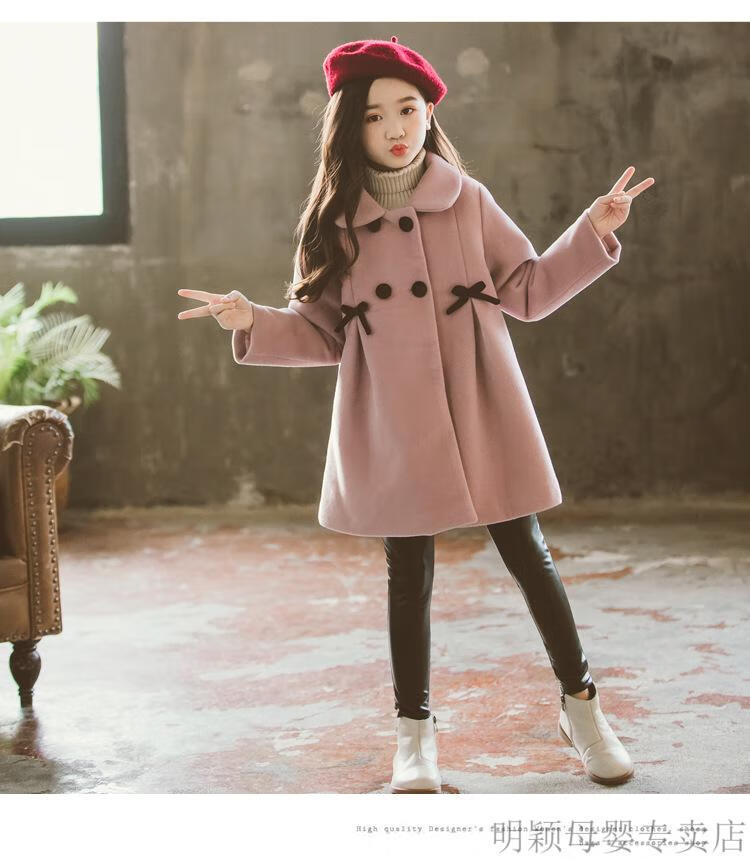 G.DUCKKIDS Girls' Autumn and Winter Style Double-sided Woolen Coat for Medium and Large Children Korean Style Western Style Children's Thickened Woolen Cotton Coat Coat Trendy Pink Bow Woolen Coat 120 Recommended for 6-7 years old