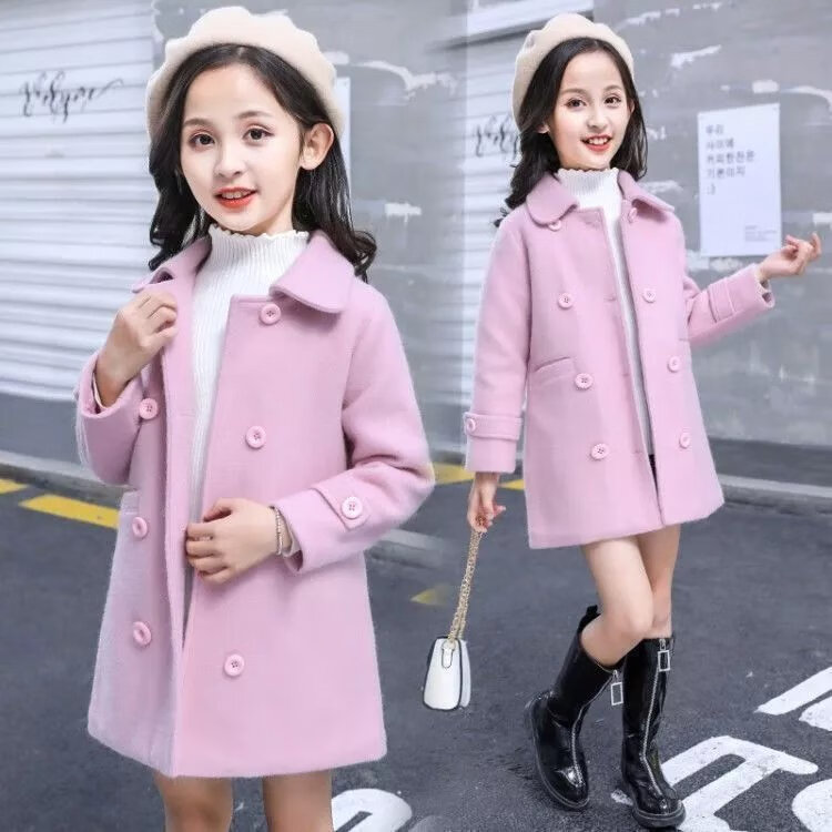 Disney (DISNEY) Veste en laine pour fille 2023 Nouveau manteau d'hiver en laine à la mode pour enfants automne et hiver de style coréen pour enfants moyens et grands, doublure simple rose 130