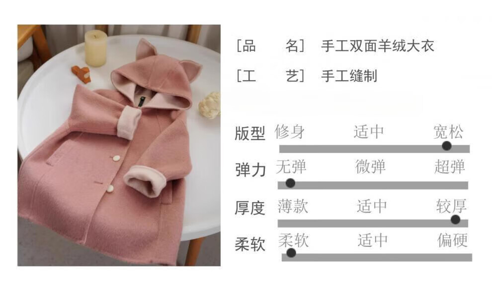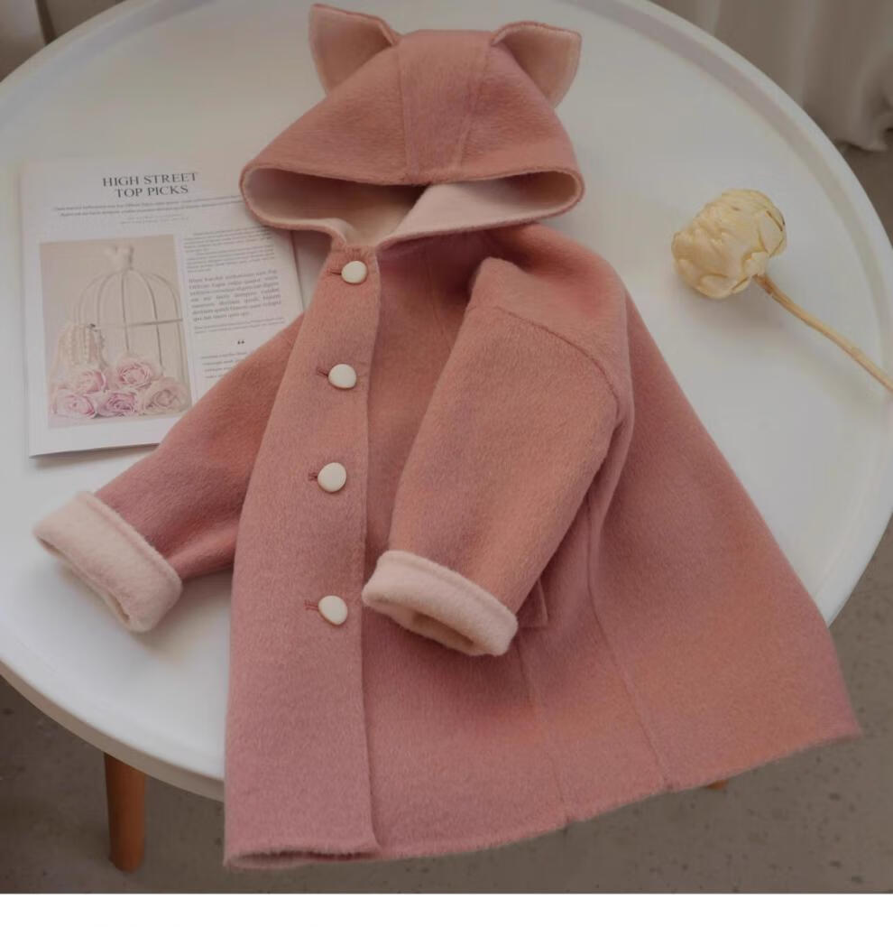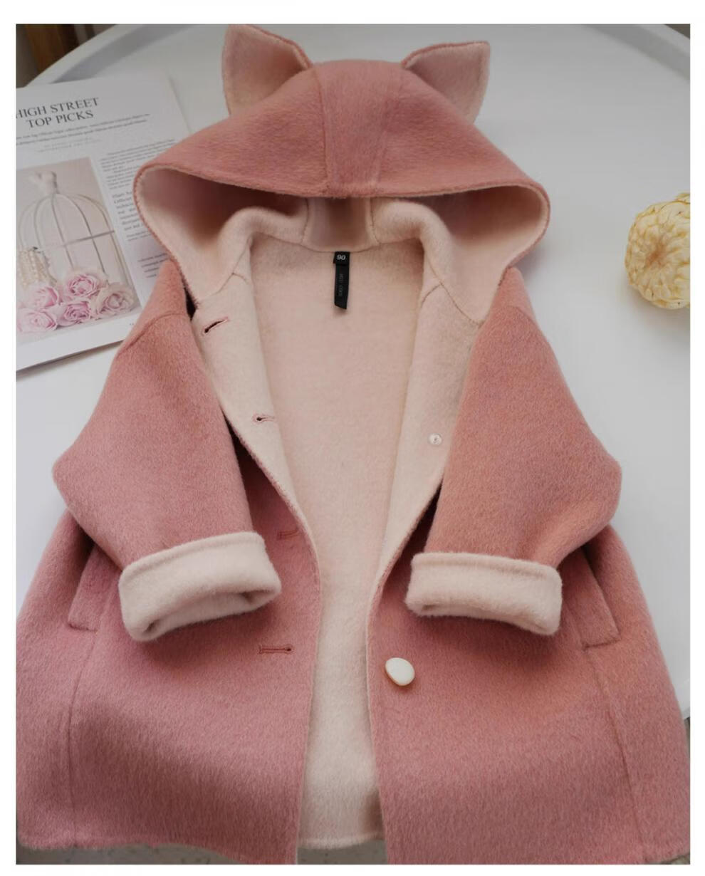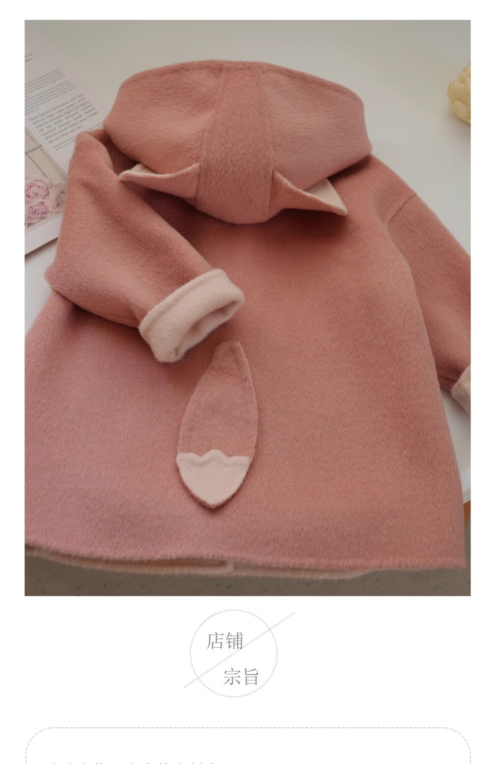 G.DUCKKIDS童装2024秋冬新款儿童可爱粉色狐狸双面呢大衣女宝宝加厚毛呢外套 粉色毛呢大衣 120
