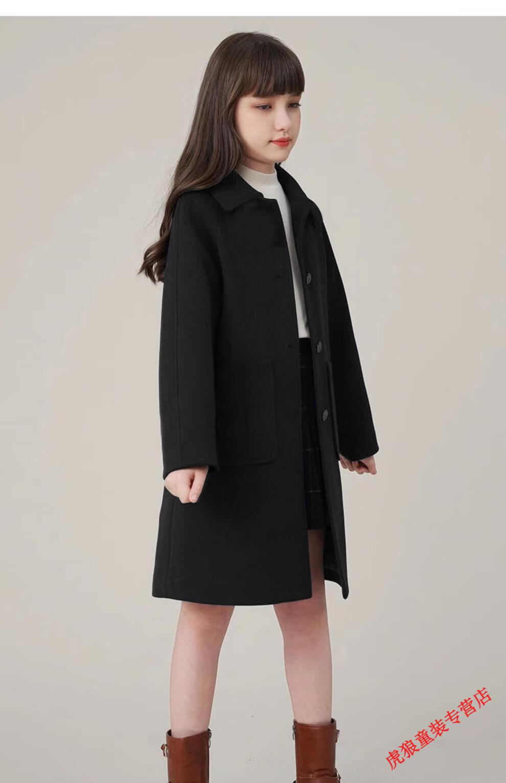 G.DUCKKIDS Wollmantel für Mädchen, 2025, neuer Wollmantel für Kinder, Herbst- und Winterkleidung für große Mädchen, Wollmantel im britischen Stil, Khaki, 150 cm