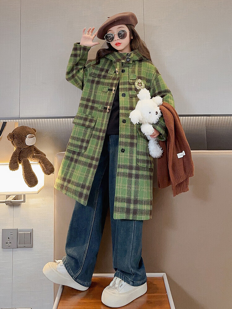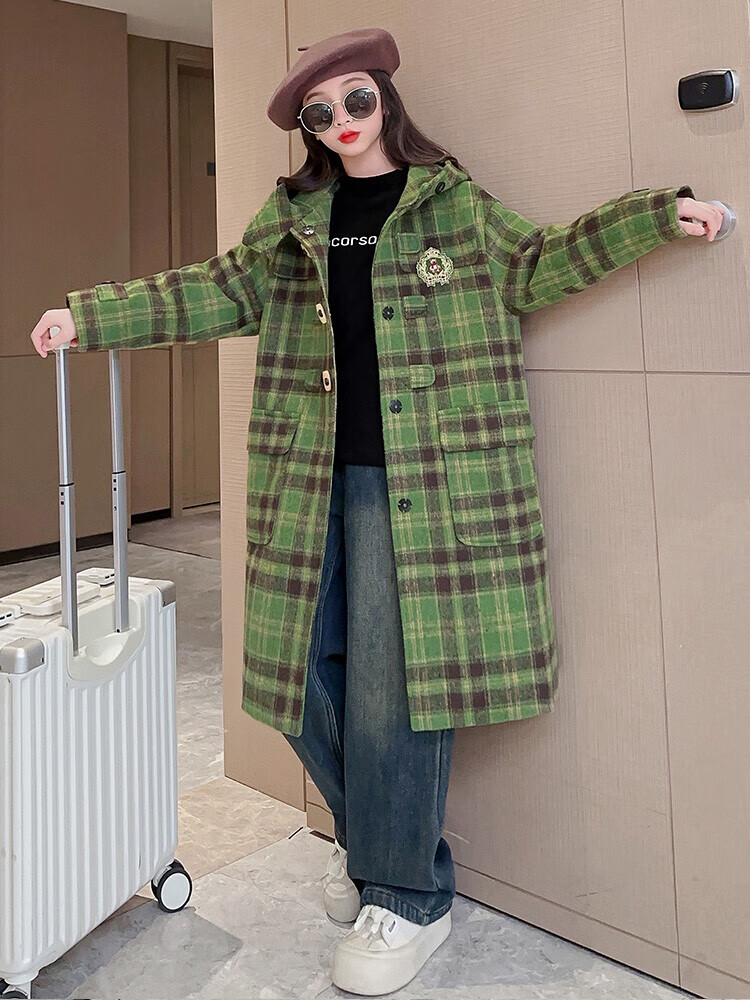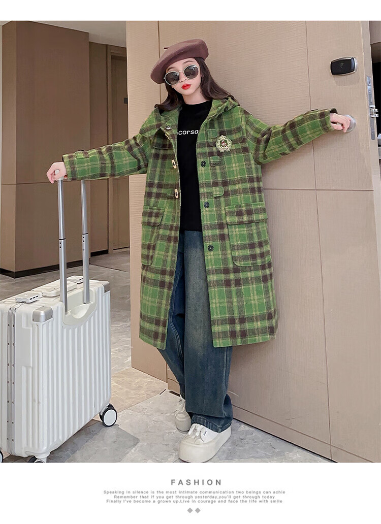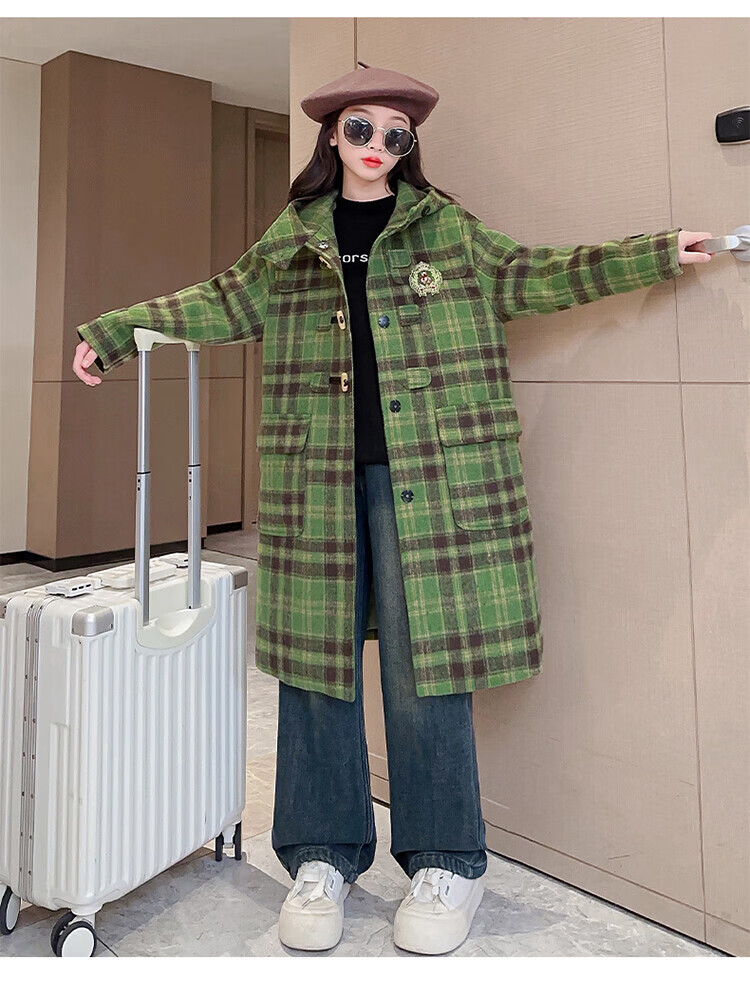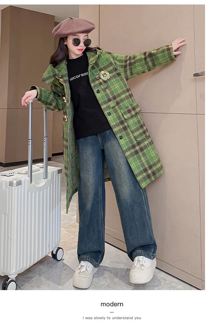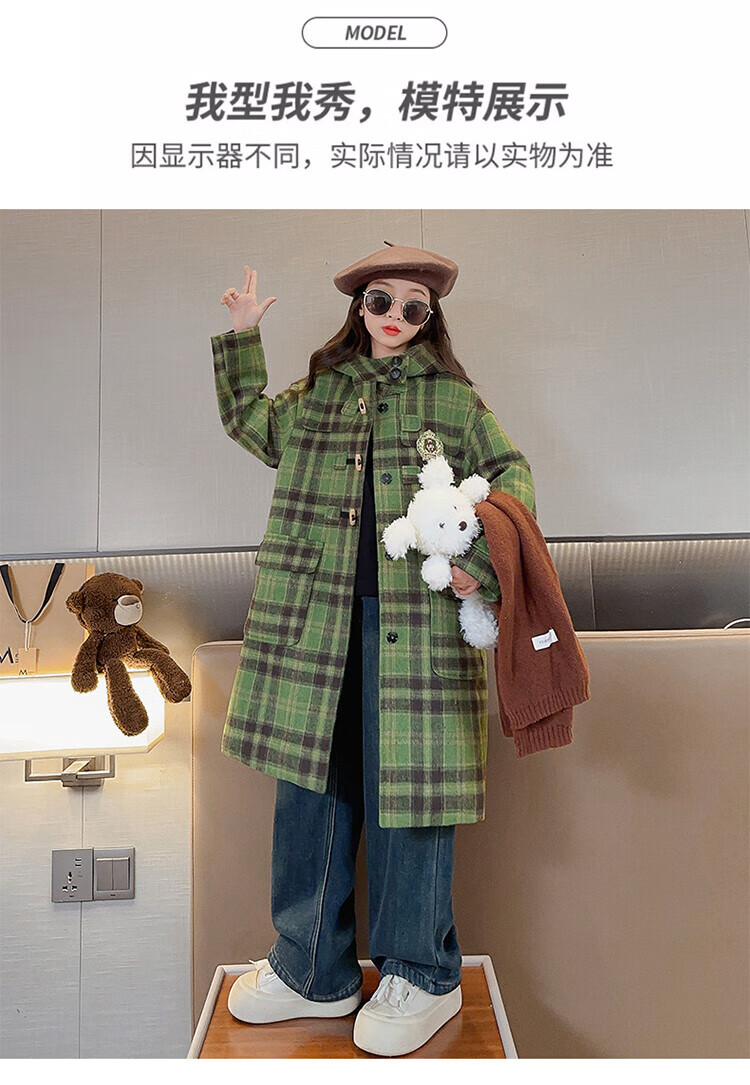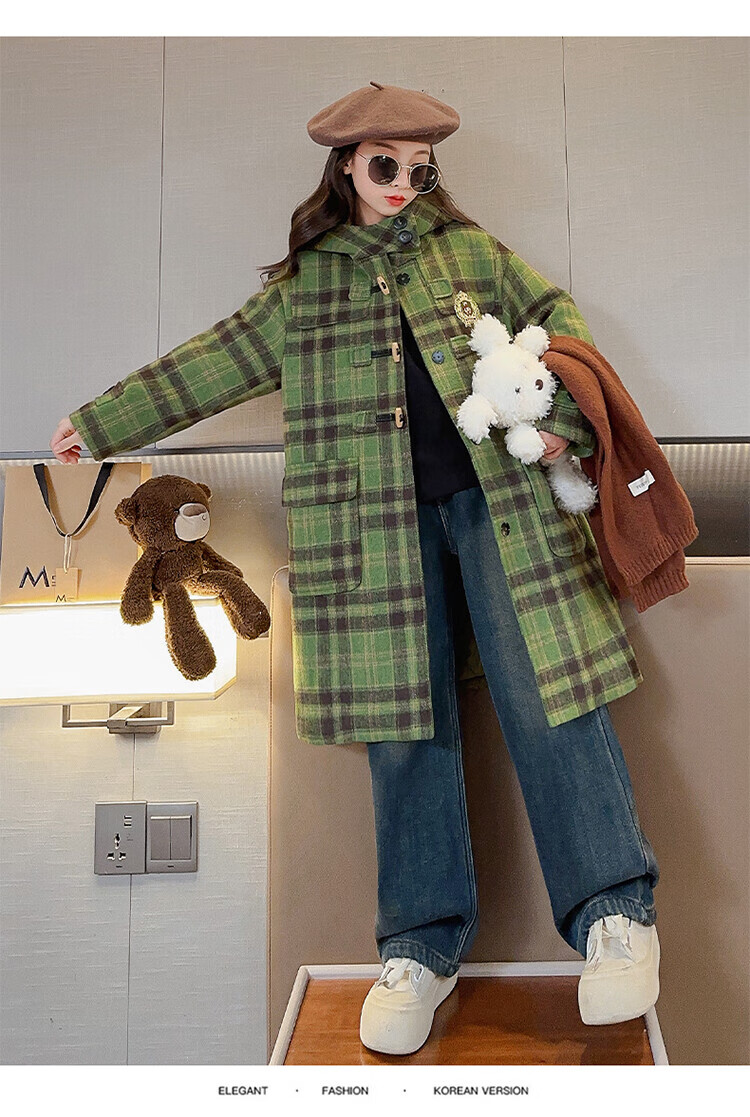 G.DUCKKIDS Little Yellow Duck Children's Clothing Girls' Jackets Autumn and Winter Plus Velvet Thickened Girls' Medium Long Woolen Coats Children's Clothes Cotton Clothes Green 170 (recommended height 160cm 14-15 years old)
