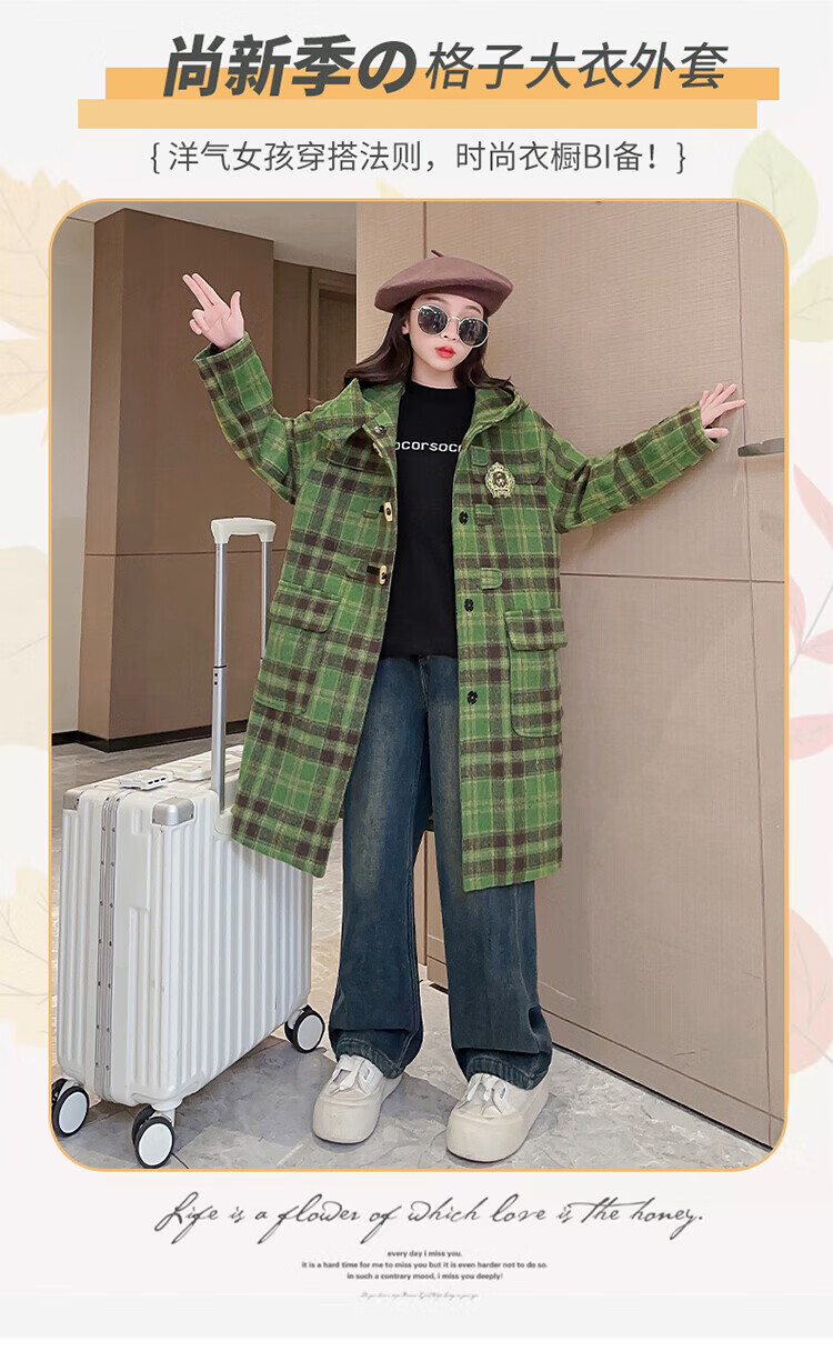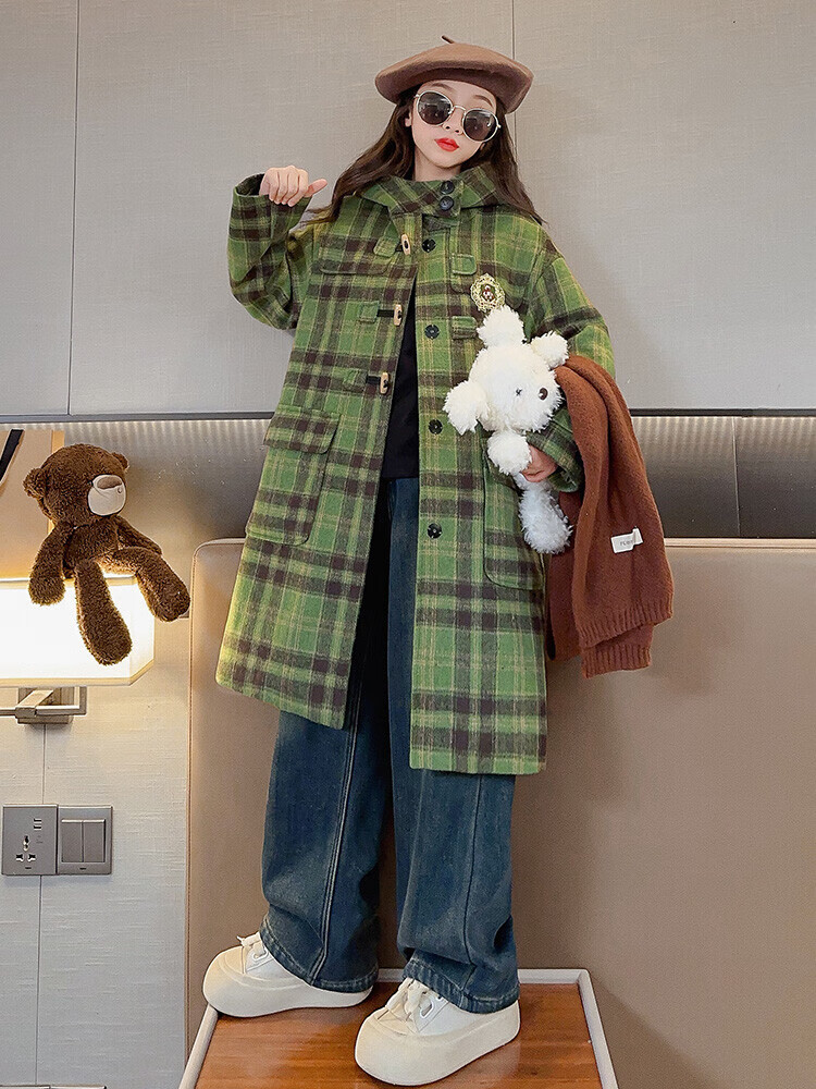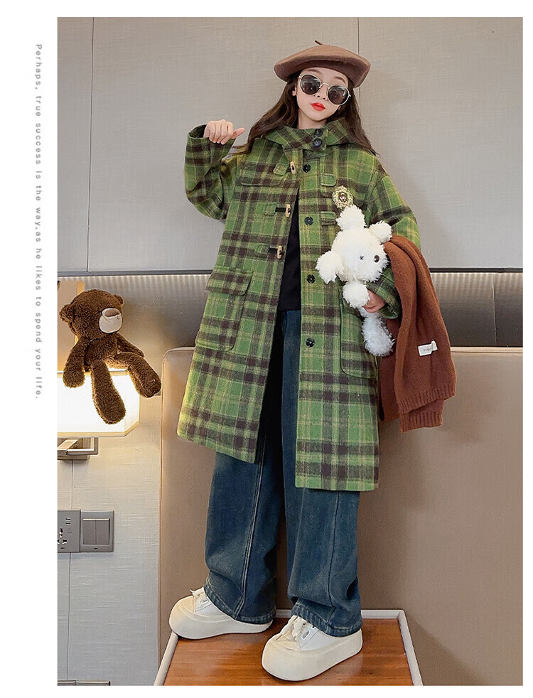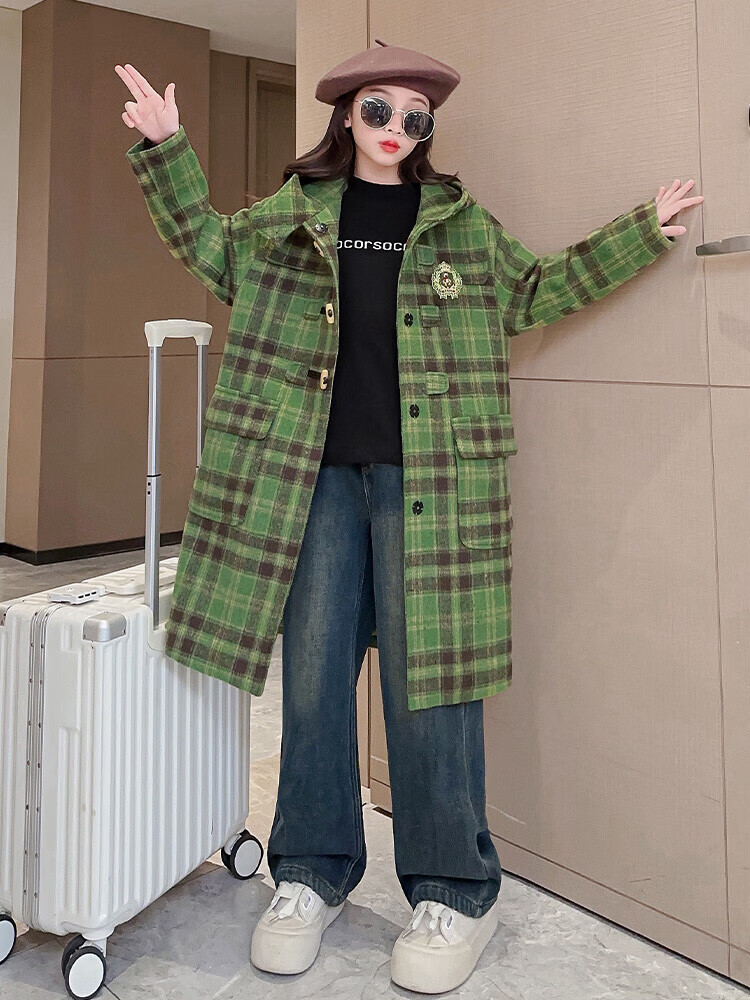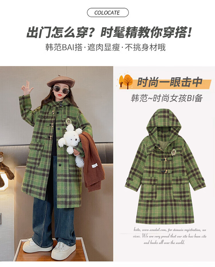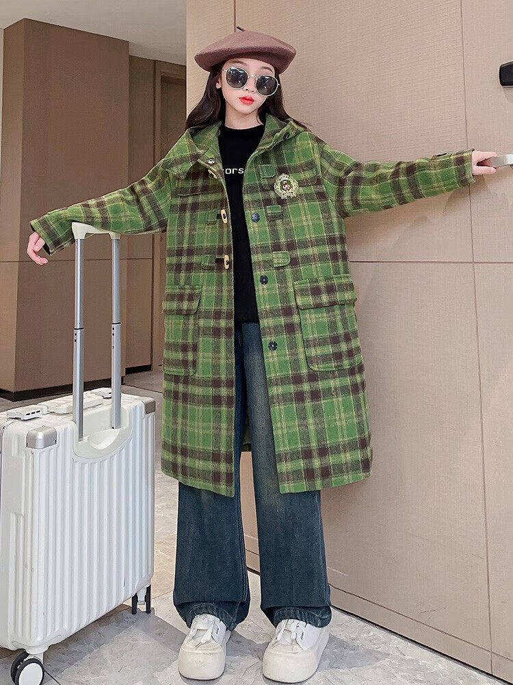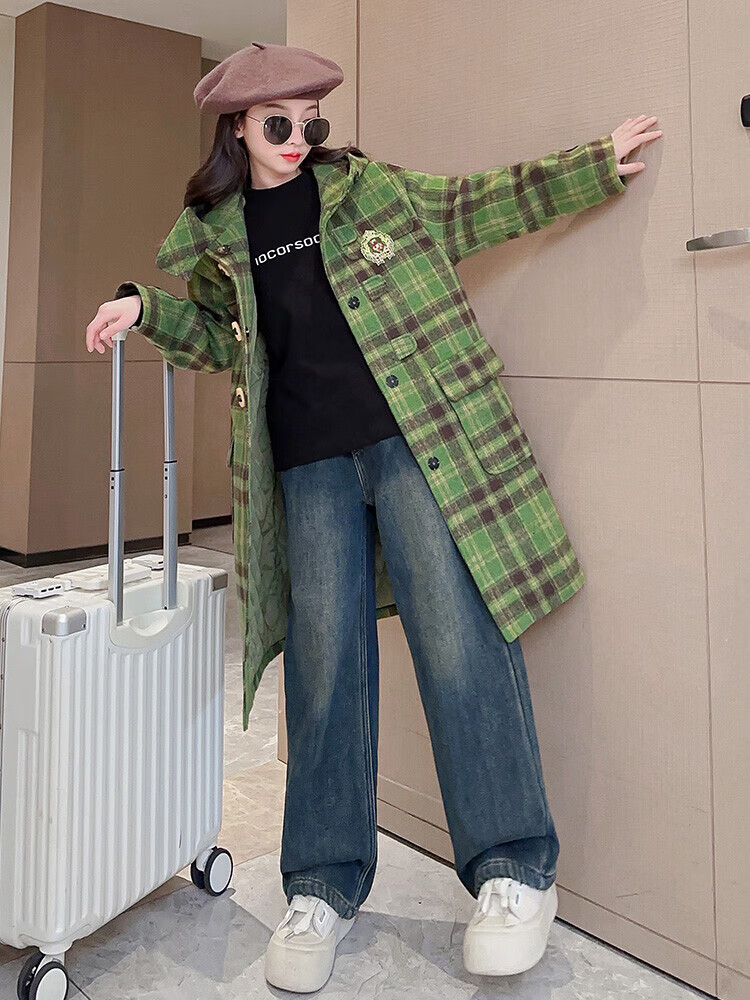 G.DUCKKIDS Little Yellow Duck Children's Clothing Girls' Jackets Autumn and Winter Plus Velvet Thickened Girls' Medium Long Woolen Coats Children's Clothes Cotton Clothes Green 170 (recommended height 160cm 14-15 years old)