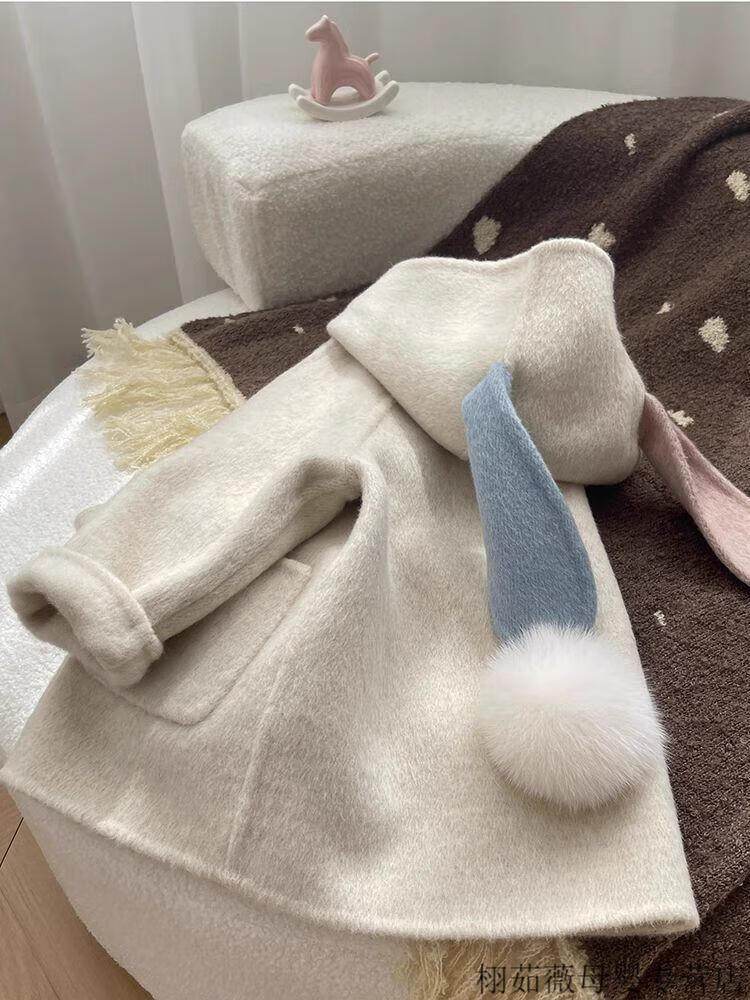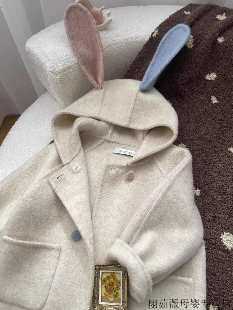迪士尼(Disney)韩国童装2025秋冬新款可爱兔子羊绒呢大衣女童加厚毛呢外套潮 双色兔子呢大衣 110 (关注店铺优先发货)
