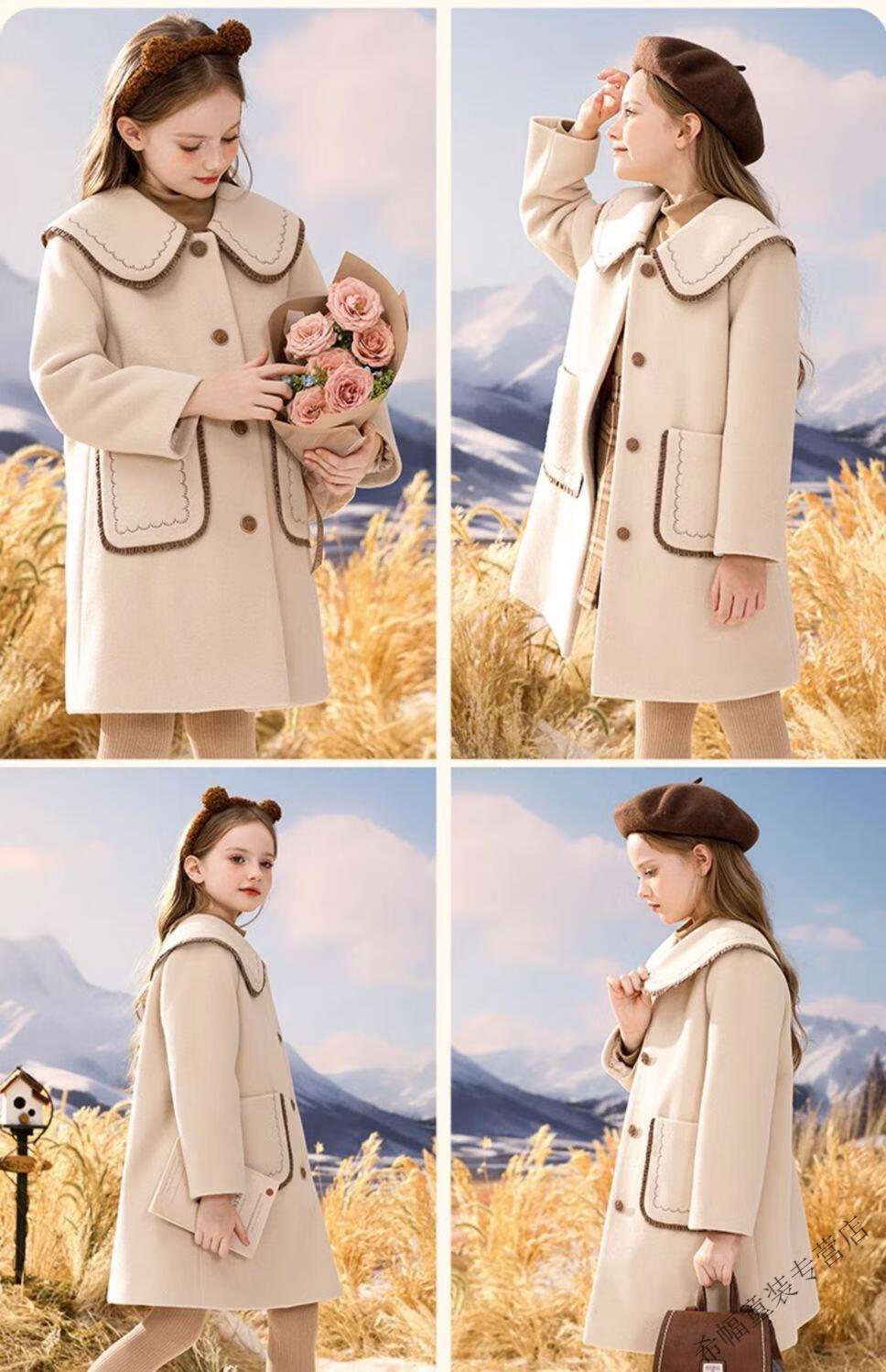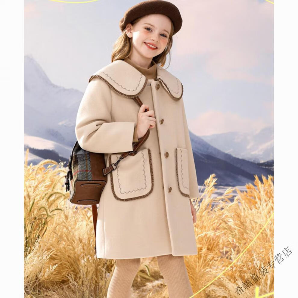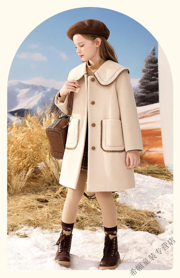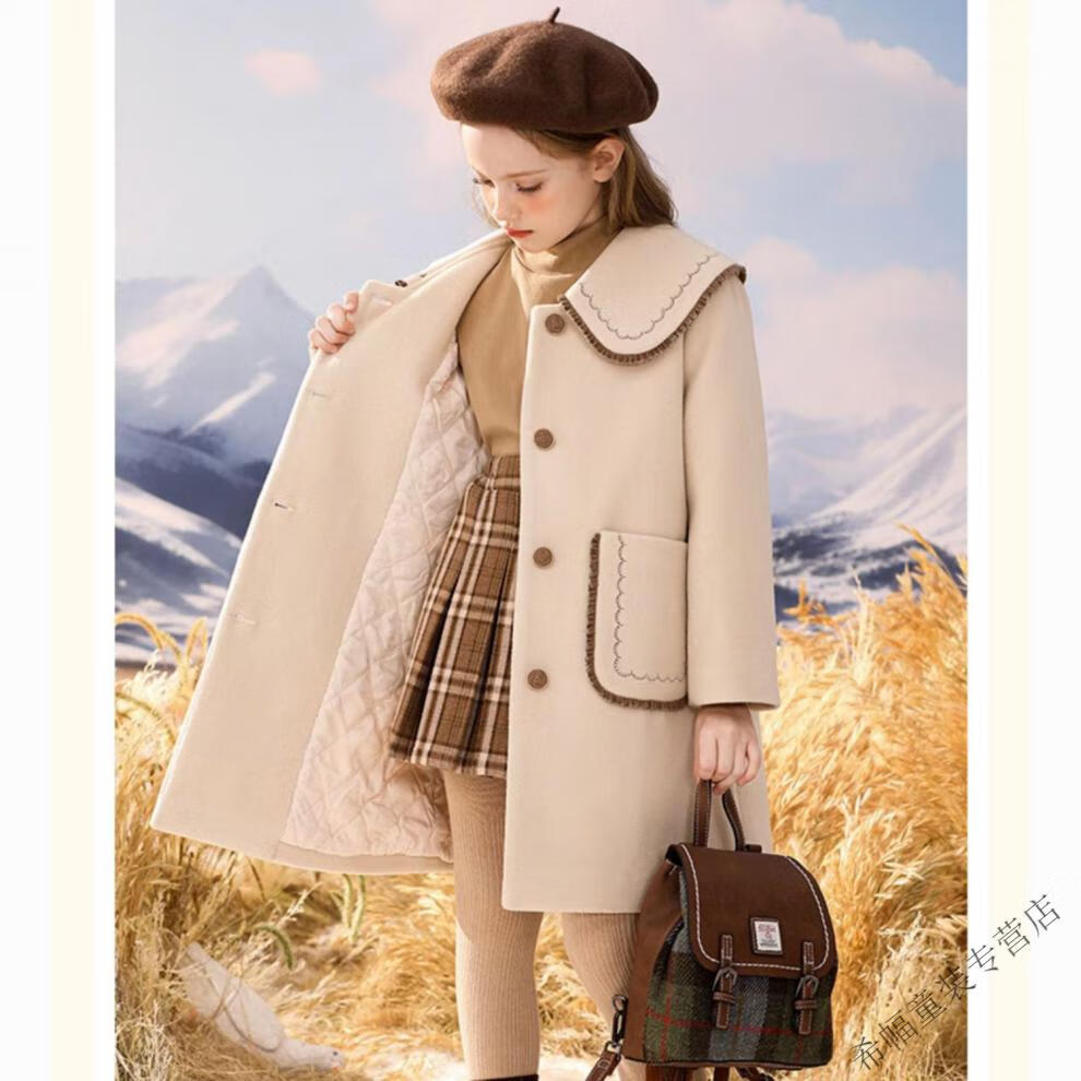 G.DUCKKIDS girls' woolen coat winter thickened quilted autumn and winter new style preppy style mid-length children's woolen coat off-white (quilted lining) 150 Height 140-145cm 11-12 years old