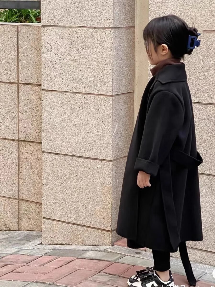 Disney (DISNEY) manteau en laine pour fille manteau en laine mi-long 2024 automne et hiver nouveau style épaissi manteau polyvalent tendance noir 150 cm