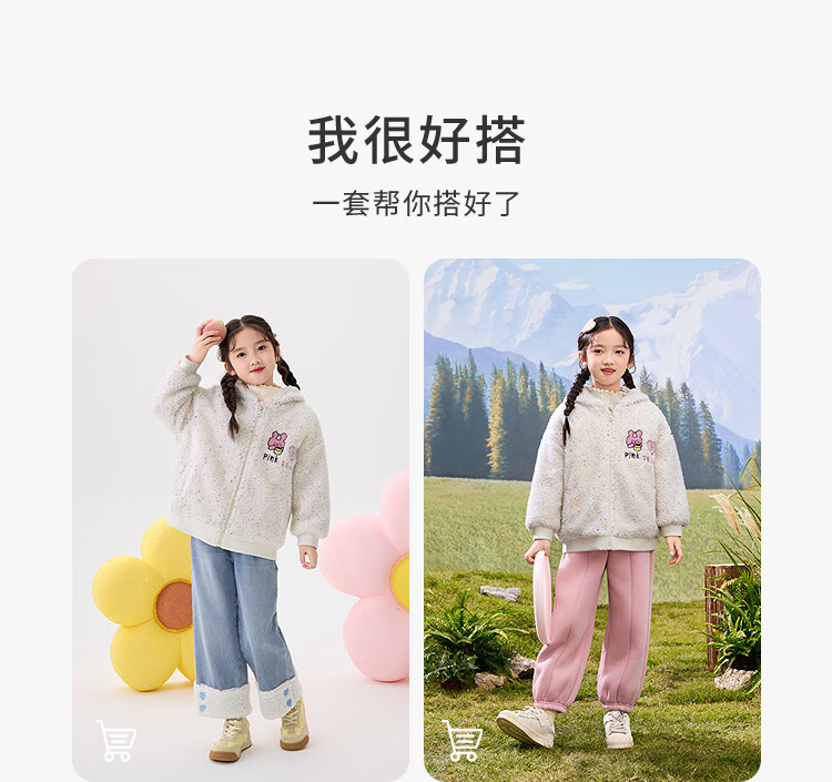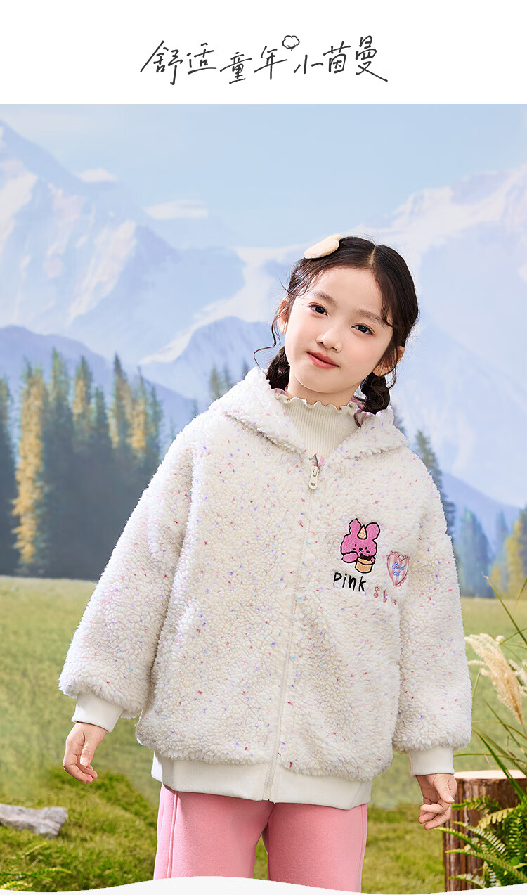 Xiaoyinman girls lamb wool coat winter new style children's warm hooded fleece fleece polar fleece coat for middle and large children, apricot 150
