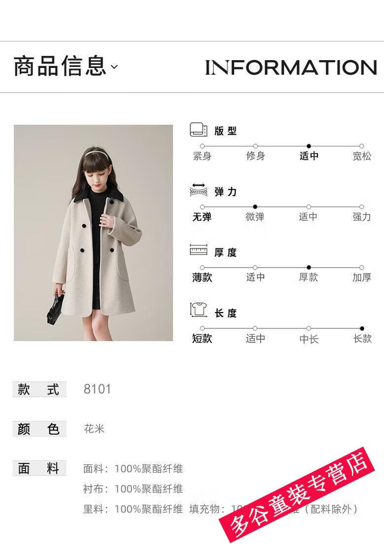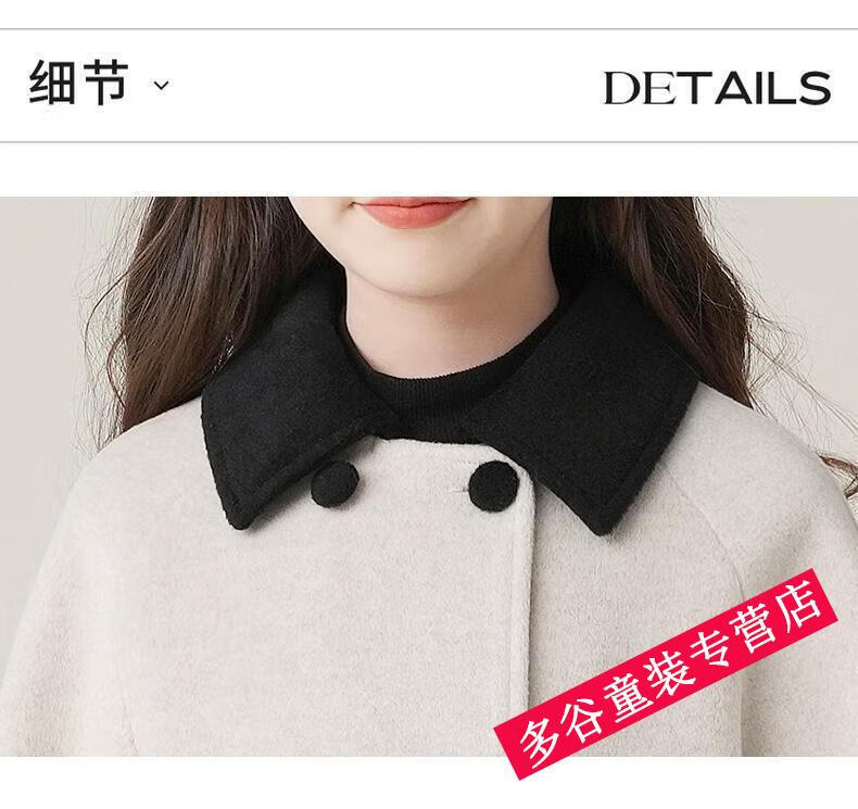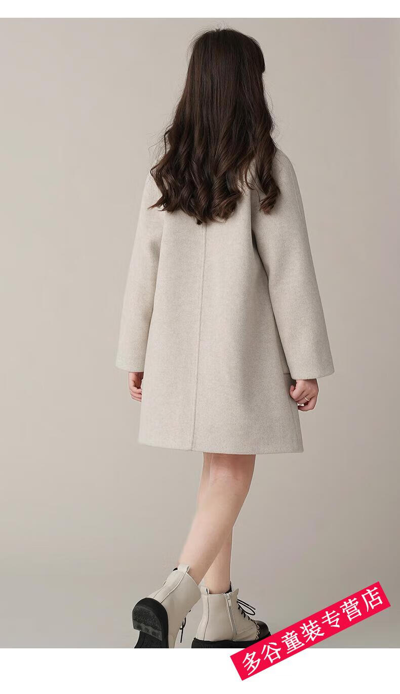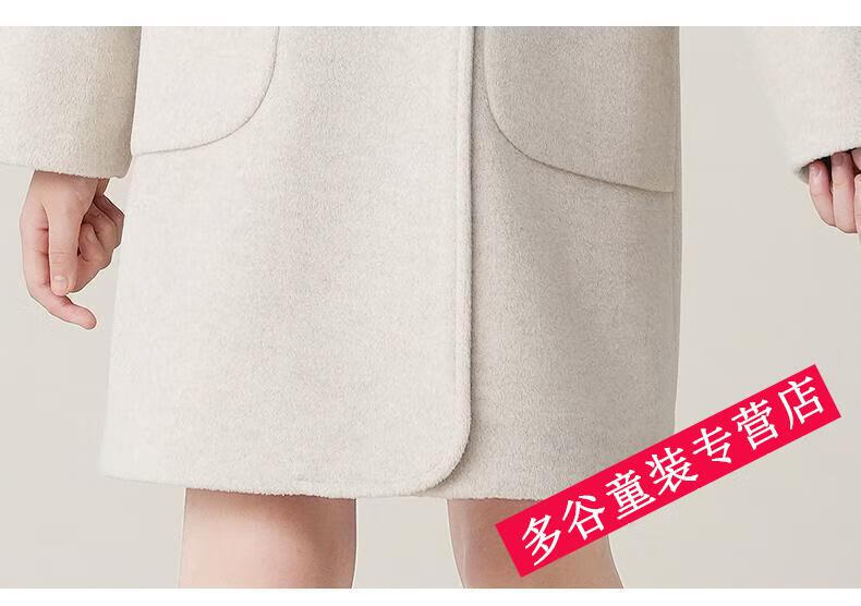 G.DUCKKIDS Wollmantel für Mädchen, Herbst und Winter 2024, Winter, neuer Wollmantel für Kinder, mittellanger, verdickter Mantel, Blumenbeige, 140 cm