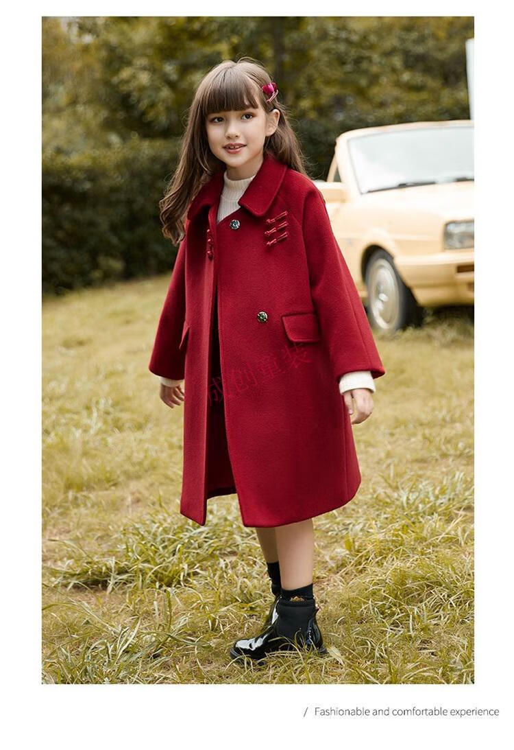 Disney (Disney) Wollmantel für Mädchen, Wollmantel für Kinder, Silvester, mittellang, Herbst und Winter, 24 neue, große Kinderoberteile für Mädchen, rotes Baumwollfutter, 130 cm