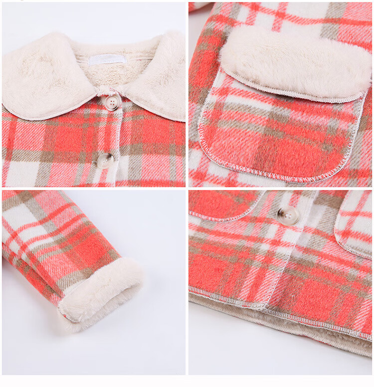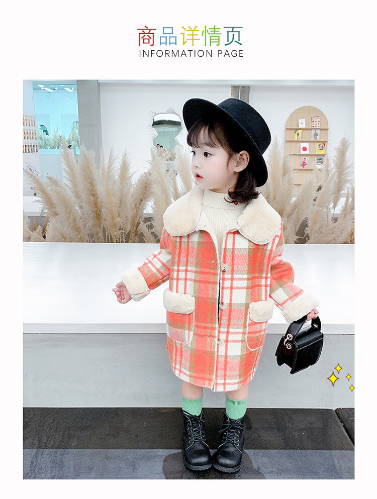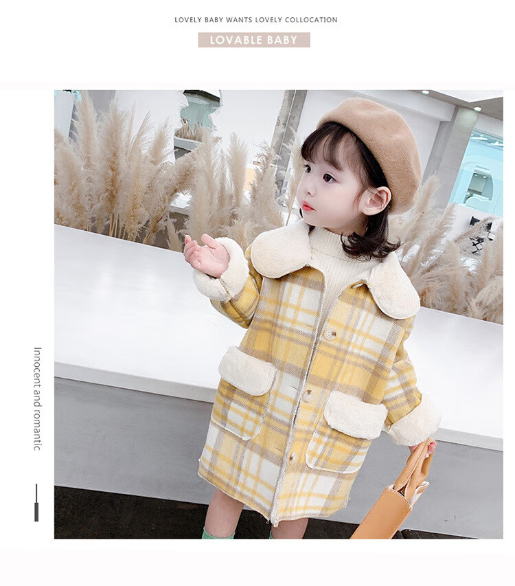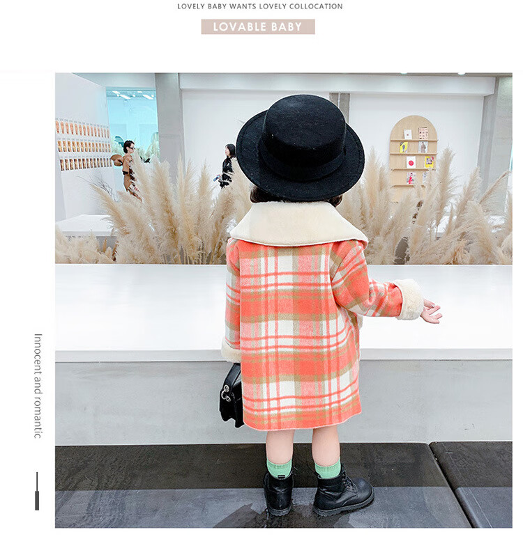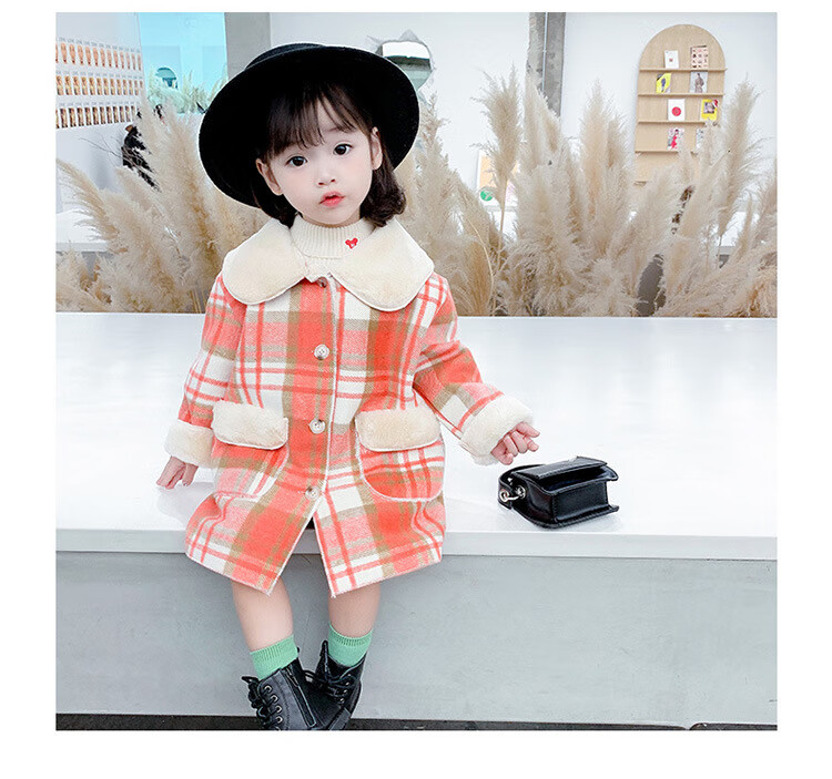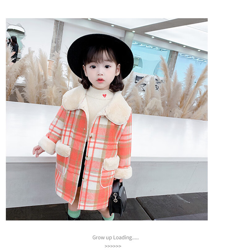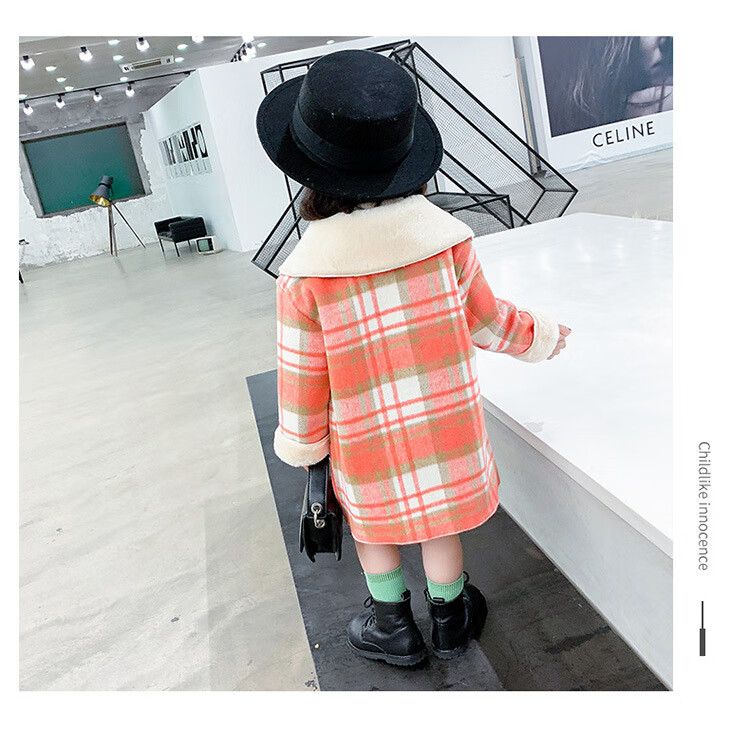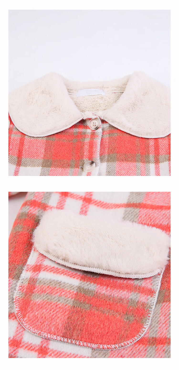 G.DUCKKIDS Girls' Plaid Woolen Coat 2024 Autumn and Winter New Style Western Style Baby Girl Temperament Mid-Length Velvet Woolen Coat Purple Plaid 130 cm
