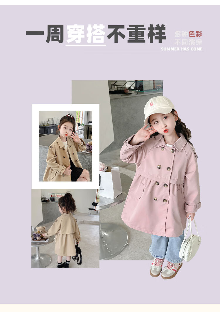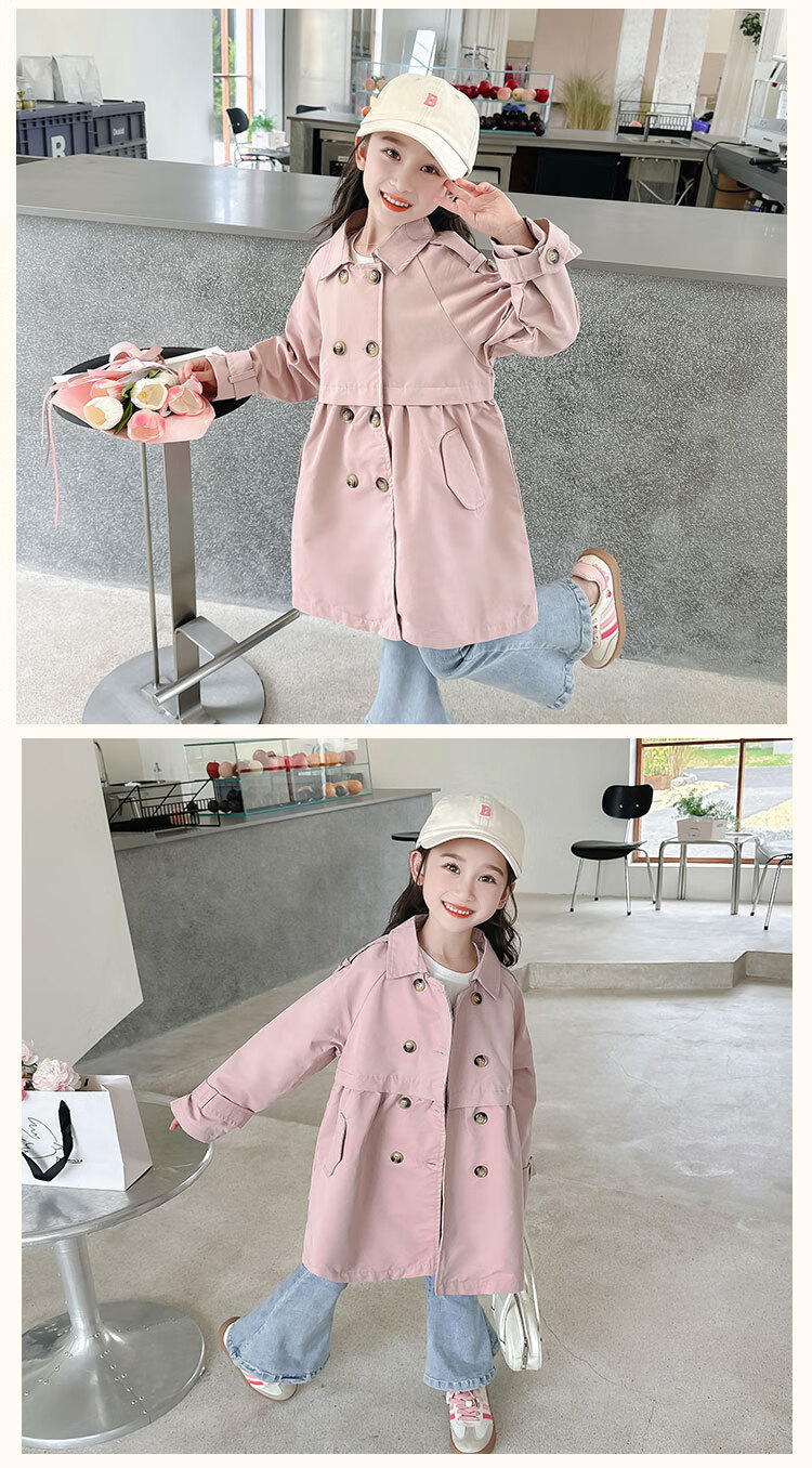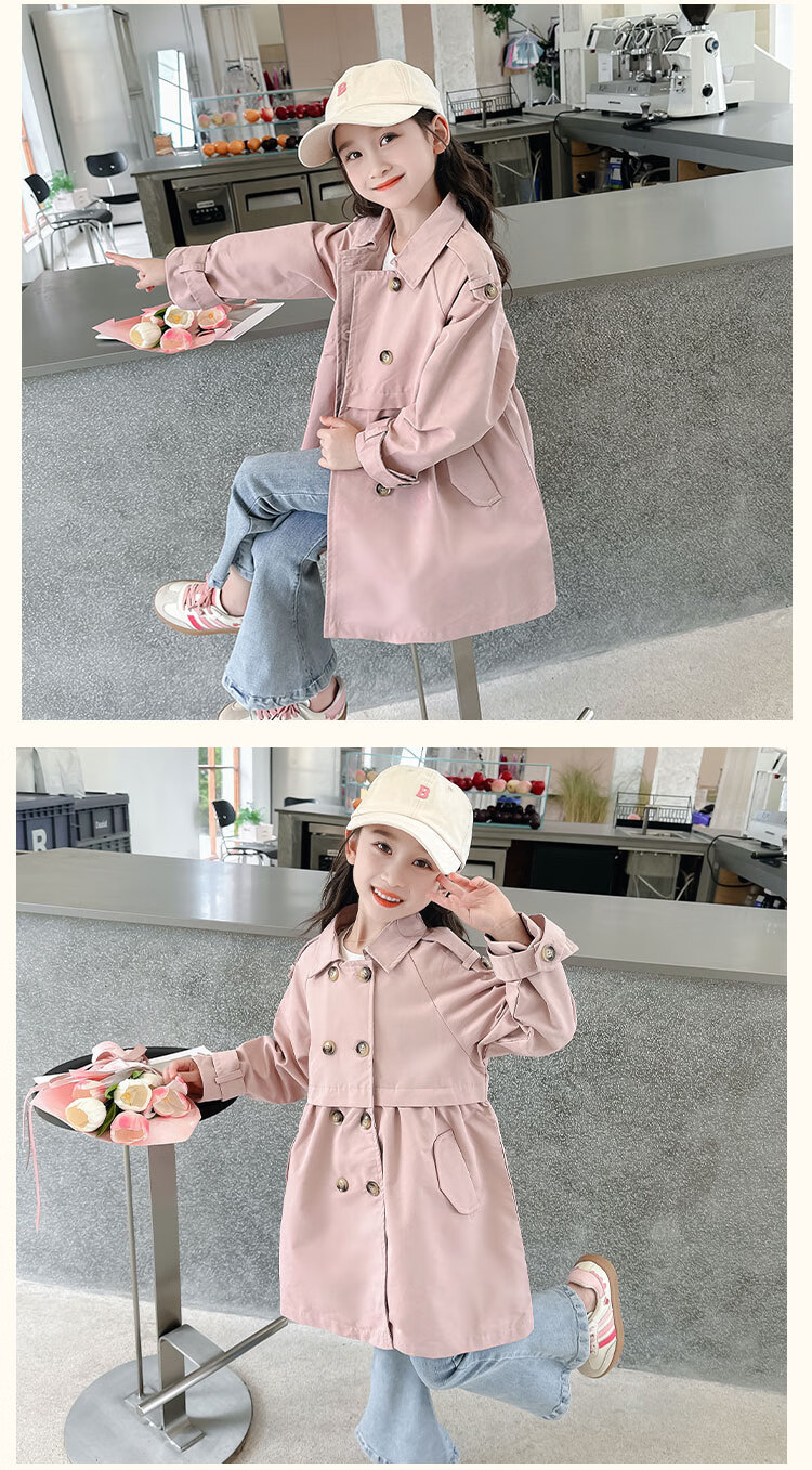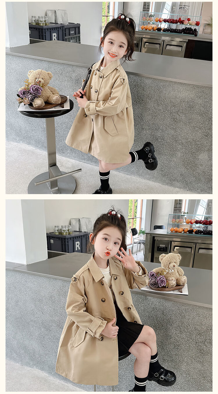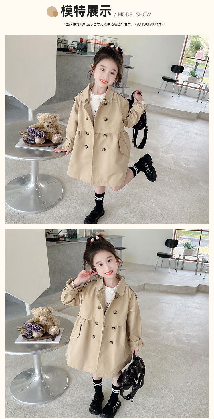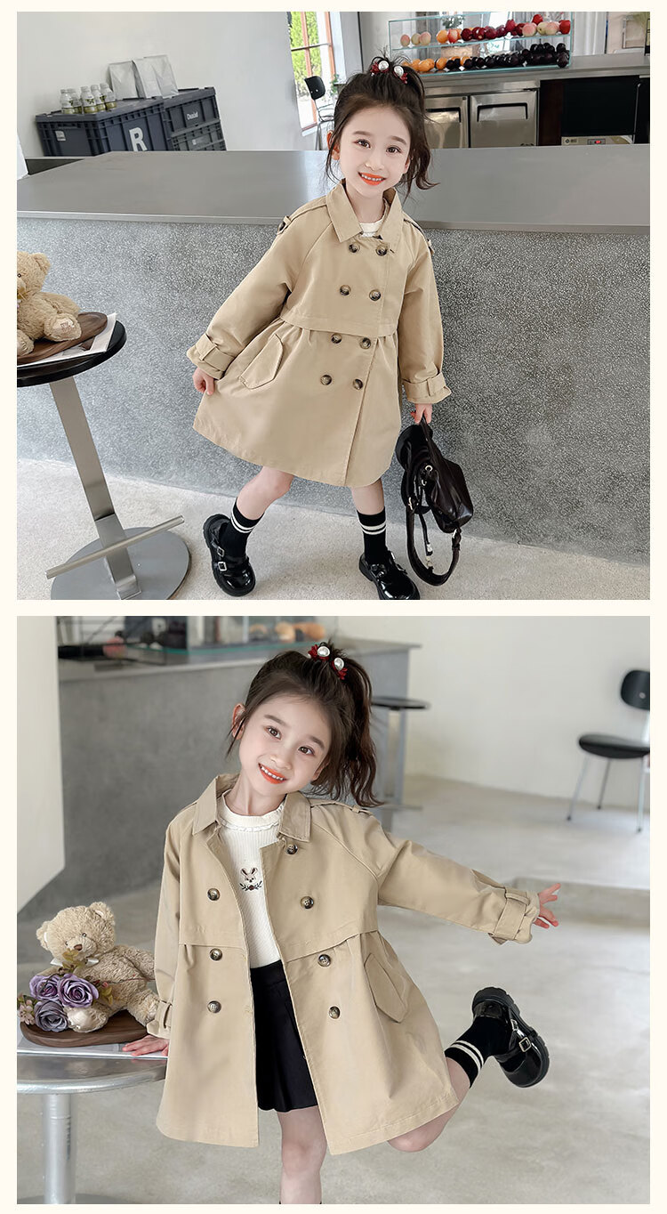 G.DUCKKIDS Girls' Windbreaker Jacket Spring 2025 New Style Fashionable British Mid-Length Children's Little Girls Autumn Coat Khaki-Double-breasted Windbreaker 90 cm