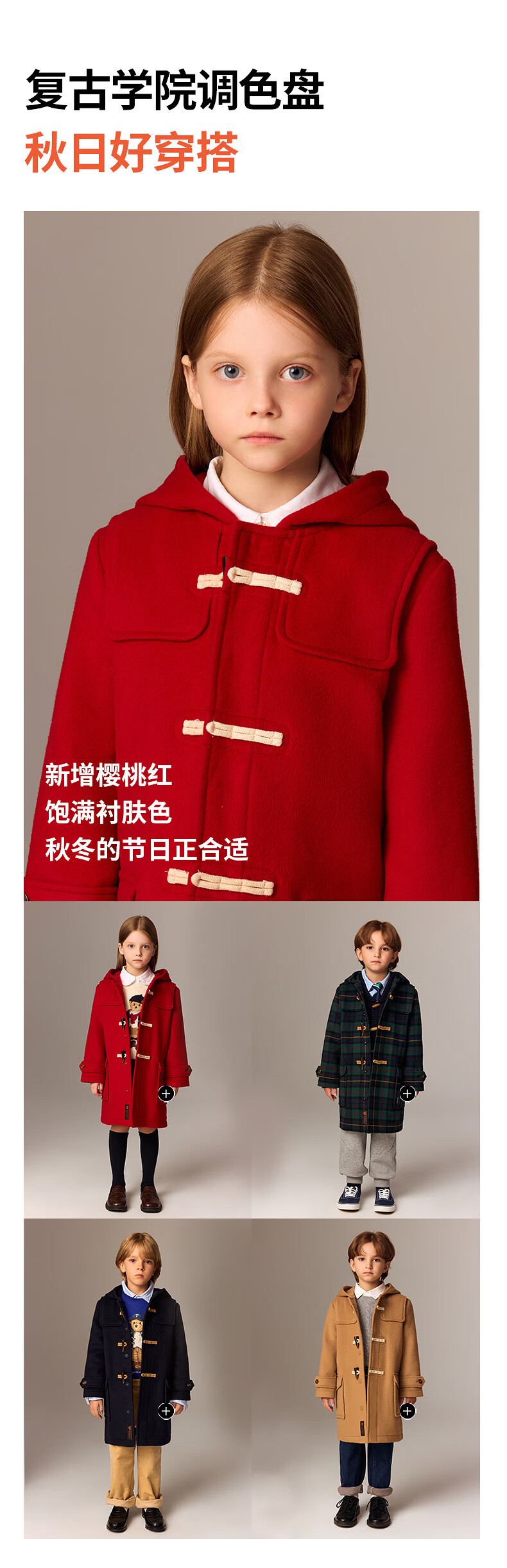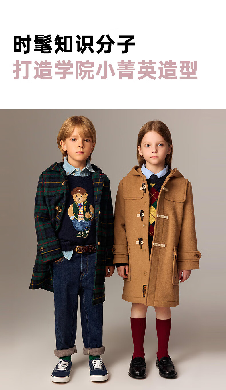 Teenie WeenieKids Bear Vêtements pour Enfants 25ème Nouvel Automne et Hiver Manteau Long en Laine mélangée pour garçons et Filles Rouge 165 cm