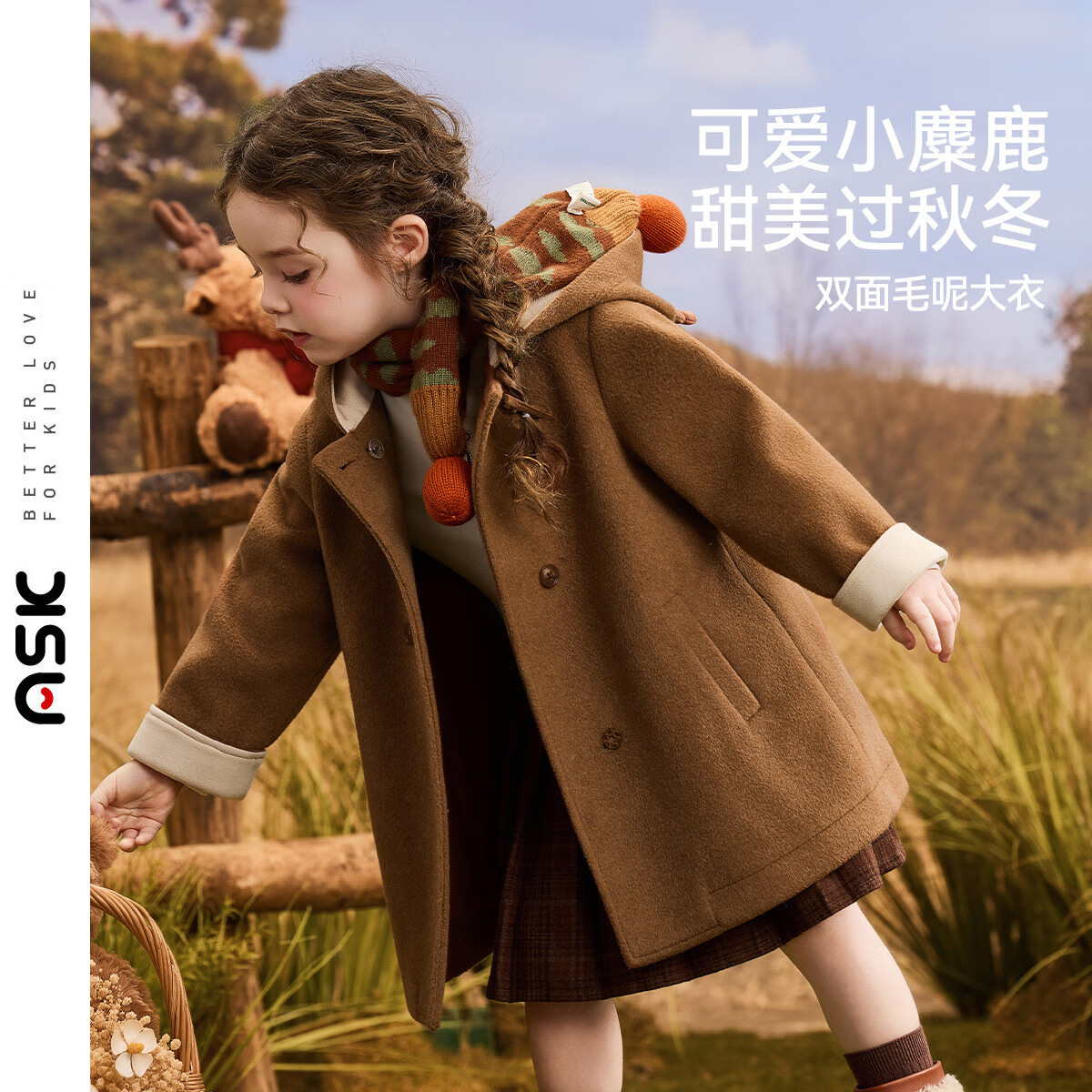 ASK JUNIOR three-dimensional deer children's coat 25 winter new children's hooded windproof girls double-sided woolen coat brown 120