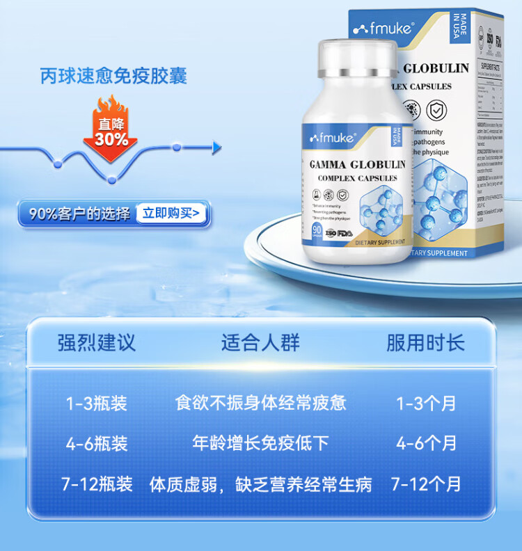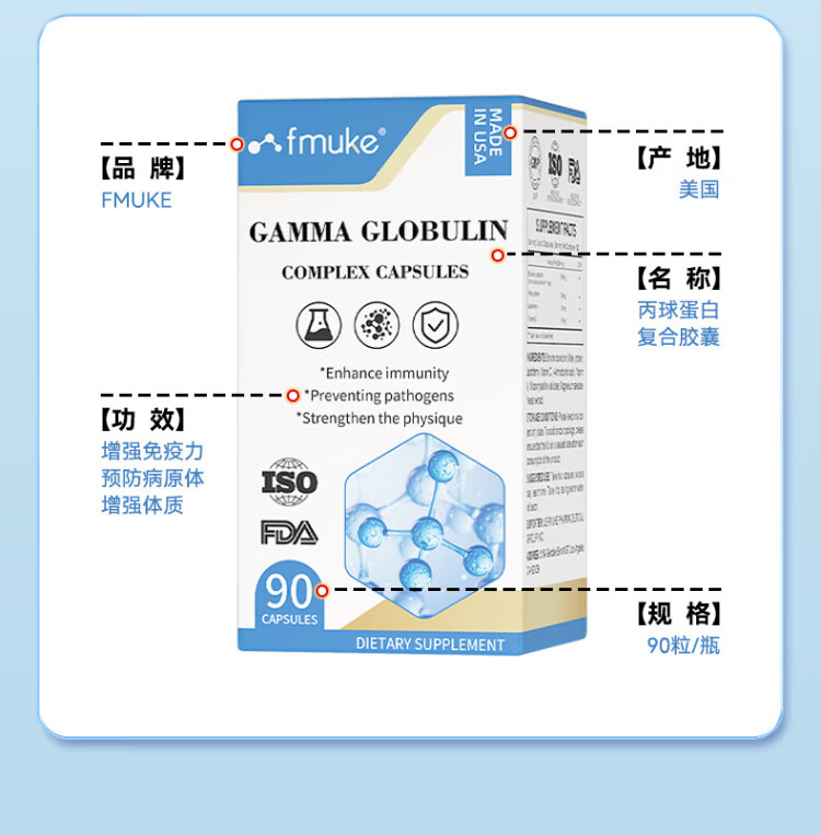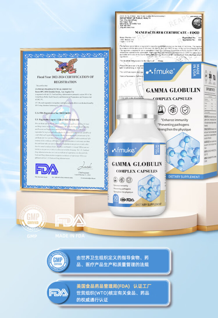 FMUKE丙球免疫球蛋白胶囊牛初乳儿童成人中老年术后提高免疫力90粒/瓶