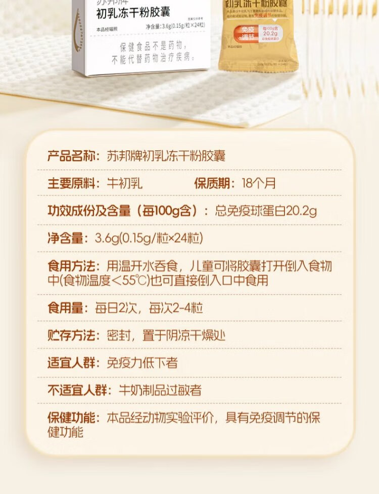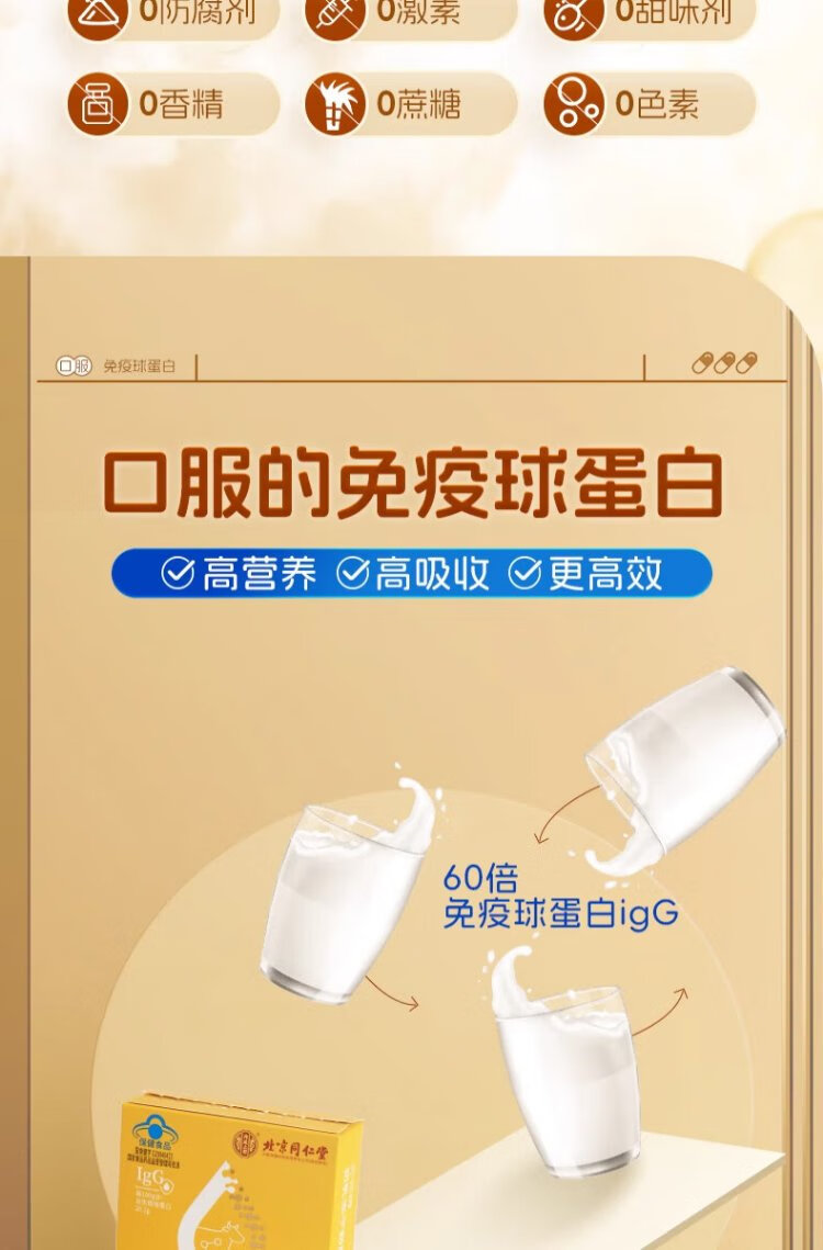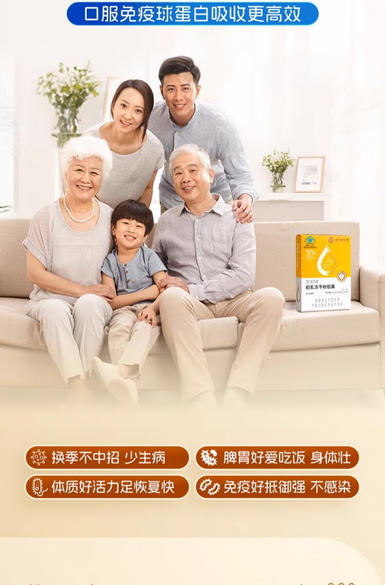 北京同仁堂 牛初乳免疫球蛋白冻干粉胶囊 免疫调节口服提高增强抵抗免疫力成人儿童中老年术后恢复营养品