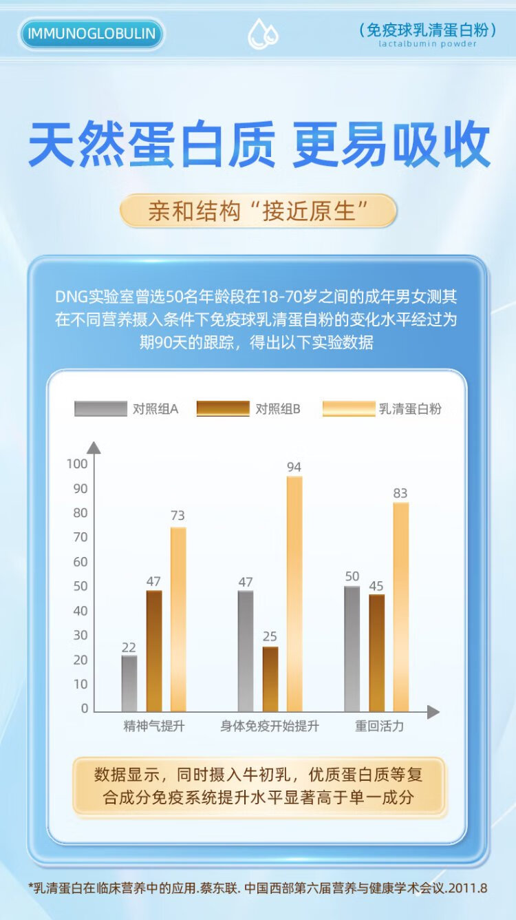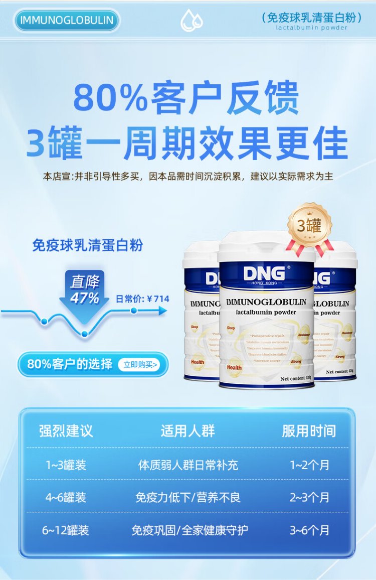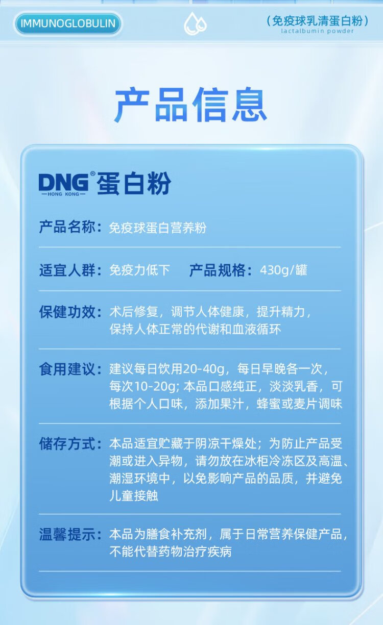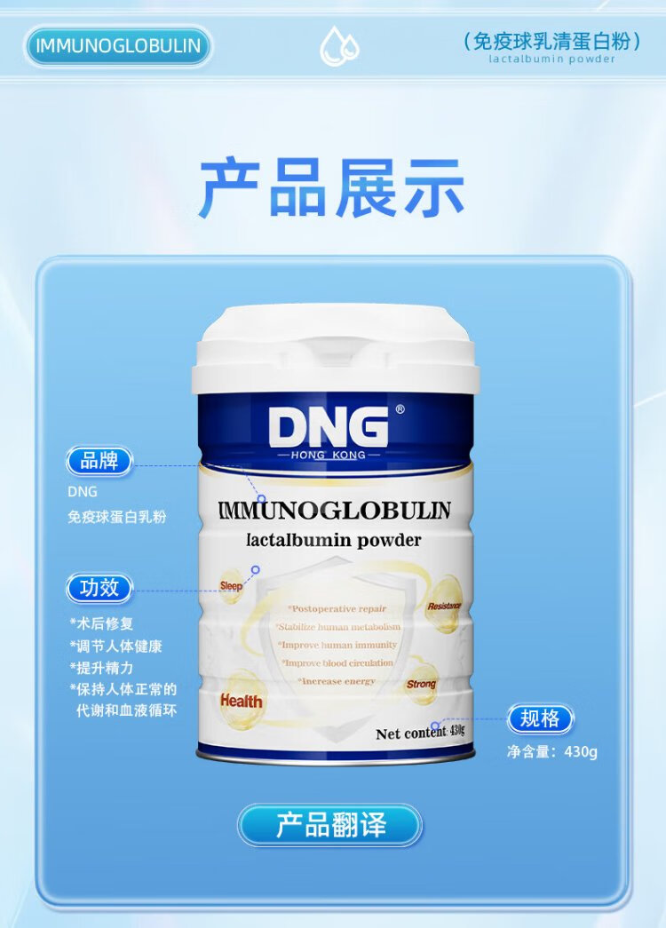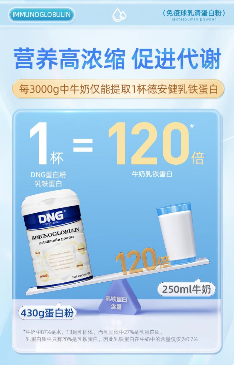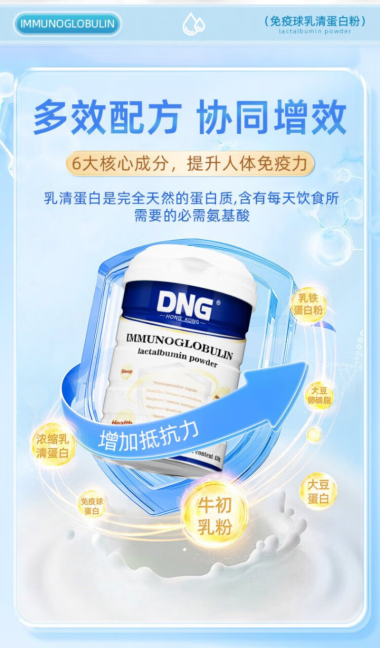 DNG imported immune globule whey protein powder for middle-aged and elderly nutrition bovine colostrum to enhance immunity 430g*3 cans gift box