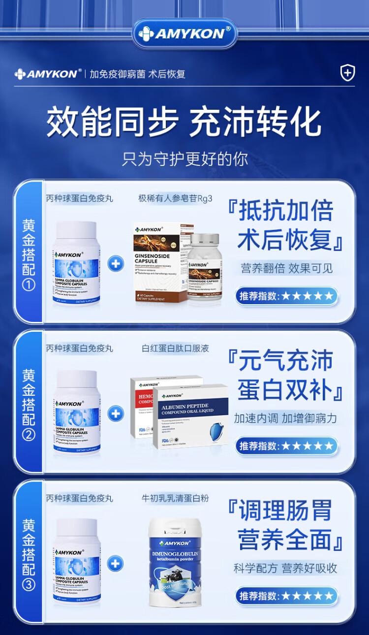 AMYKON丙种球免疫球蛋白静不注术射后营养品提高免疫抵抗儿童成老人3瓶