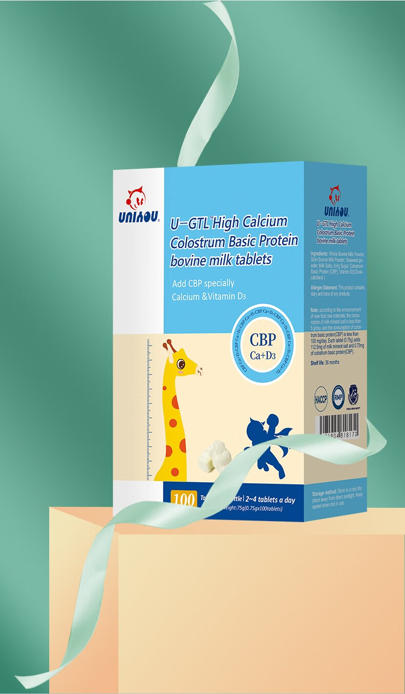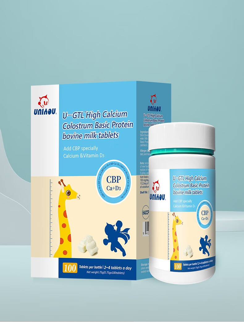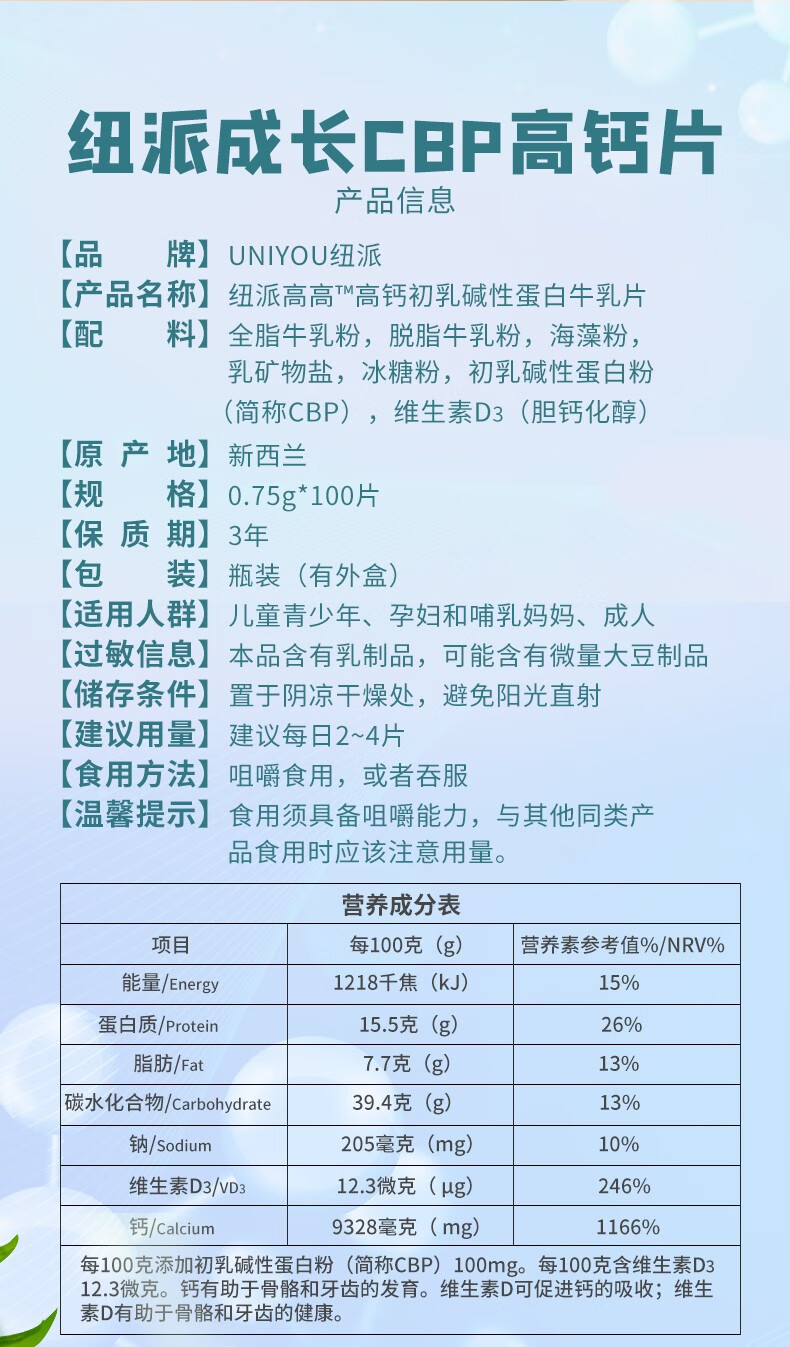 纽派 高钙初乳碱性蛋白牛乳钙100片3岁以上牛初乳维D3海藻钙钙片