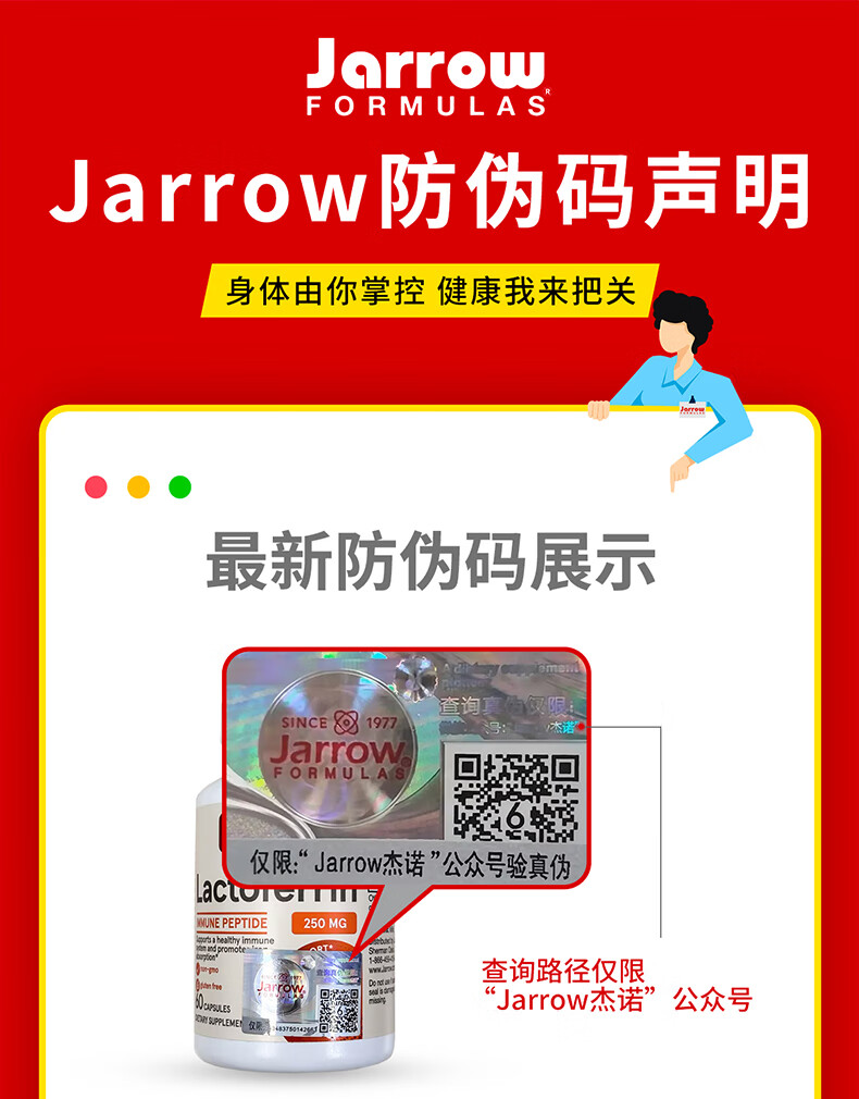 Jarrow Lactoferrin Capsules enhance immunity and prevent seasonal changes in colostrum imported from the United States freeze-dried lactoferrin 60 capsules/bottle
