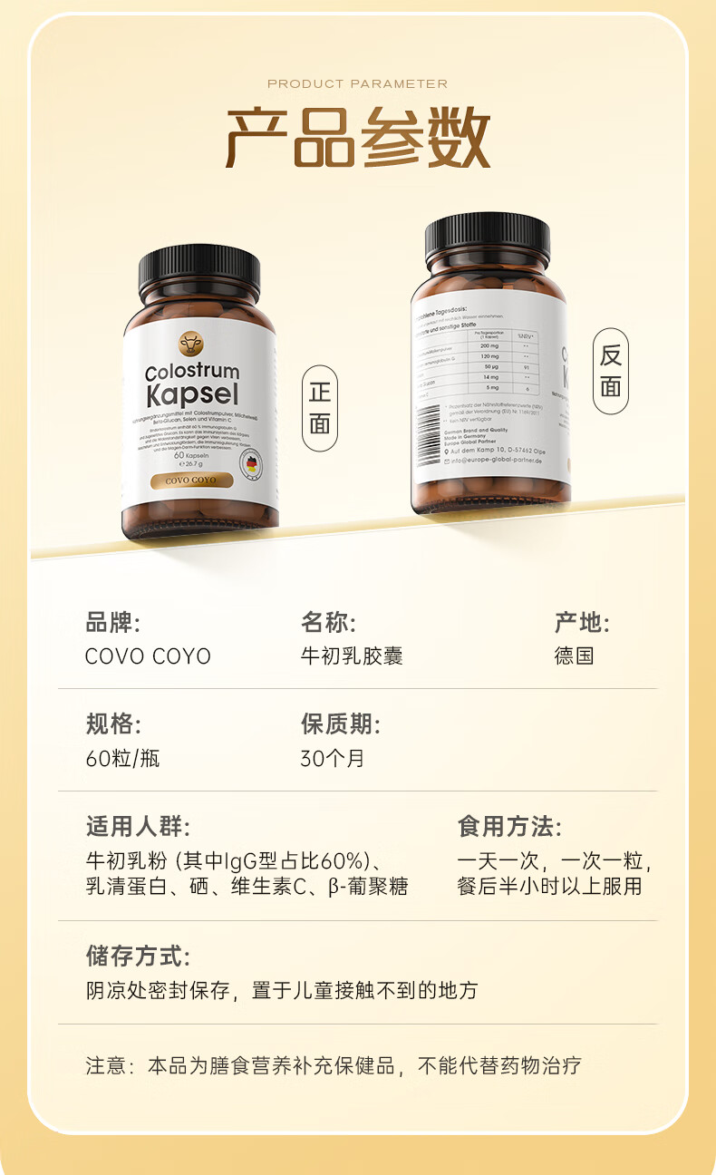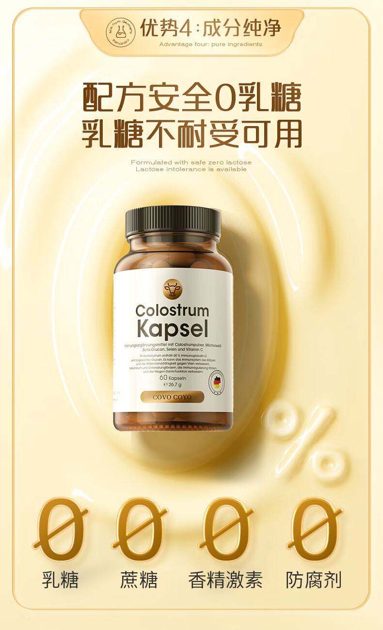 COVO COYO imported bovine colostrum capsule immunoglobulin improves immunity and resistance and enhances physical fitness for adults and adolescents. Compound colostrum capsule 1 bottle-60 capsules/bottle