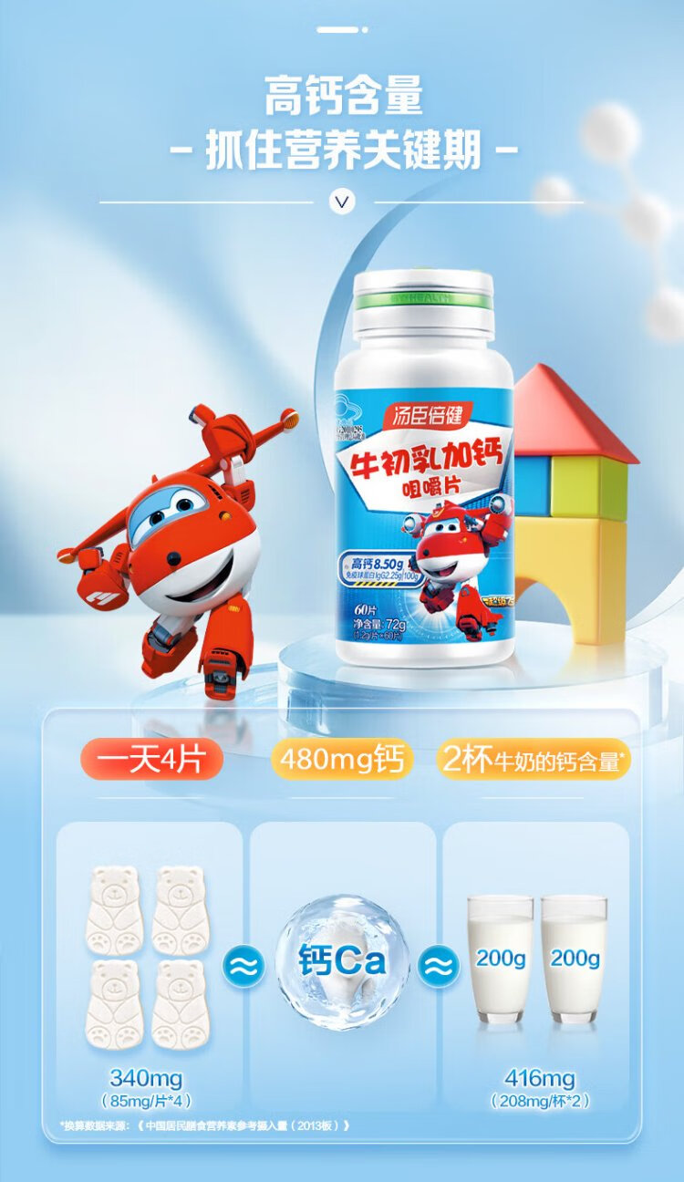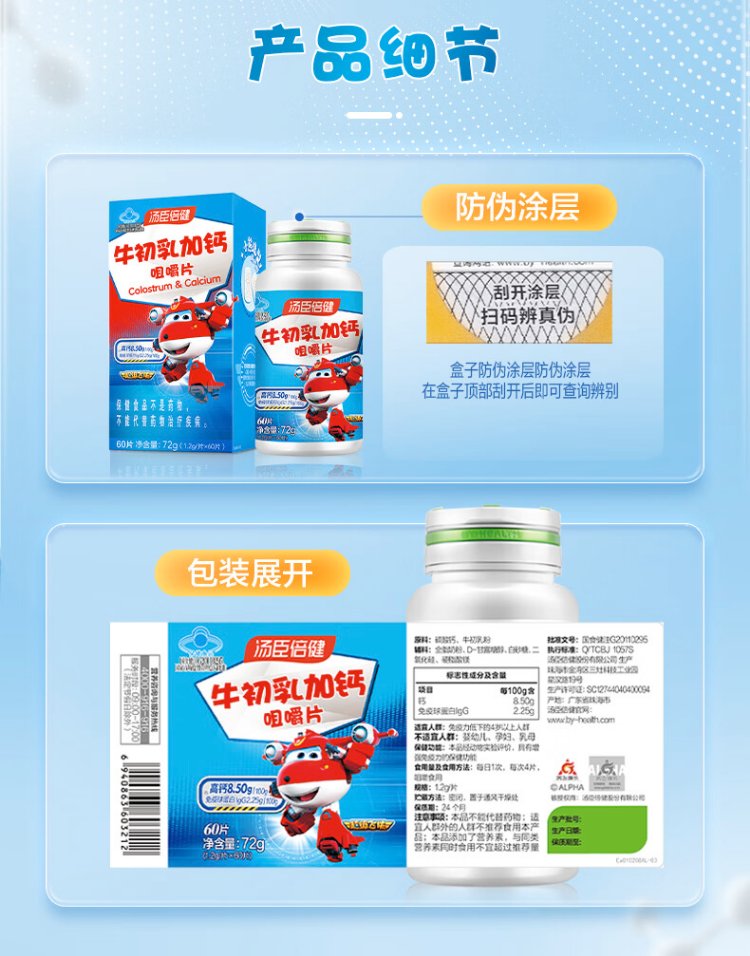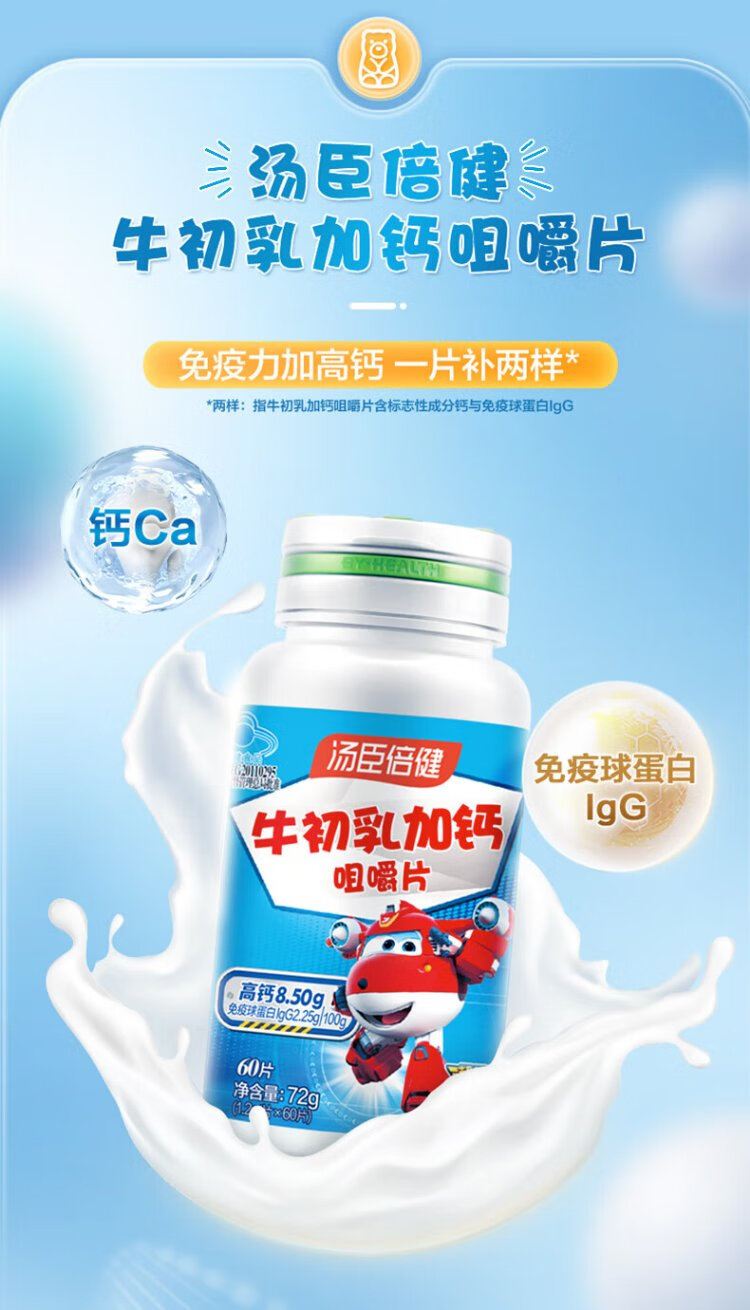 Tomson By-Health Colostrum Calcium Kautabletten 120 Tabletten Kinder Calcium Eisen Zink Kinder Multivitamin 6–13 Jahre alt Teenager 4–6 Jahre alt Colostrum Plus Calcium Kautabletten Insgesamt 120 Tabletten