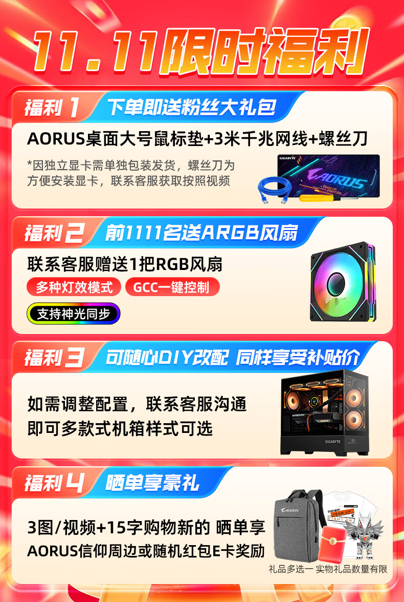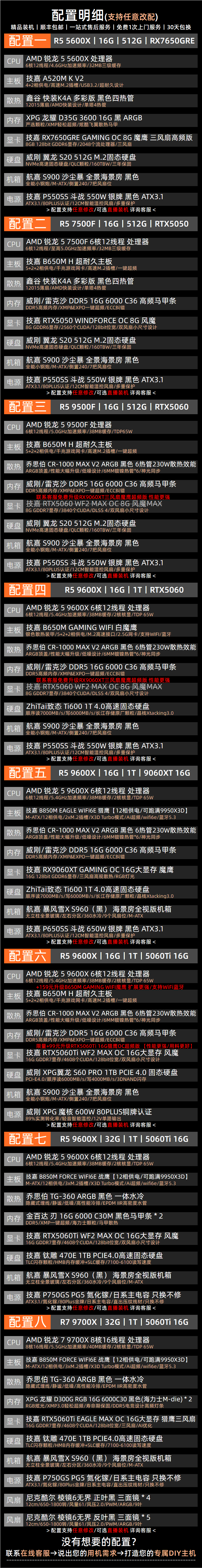 Gigabyte 5060Ti 16G large video memory/RX9060XT triple fan 7650GRE+AMD Ryzen 5 9600X e-sports game live broadcast design sea view room DIY desktop computer host six R5 9600X丨5060Ti 16G